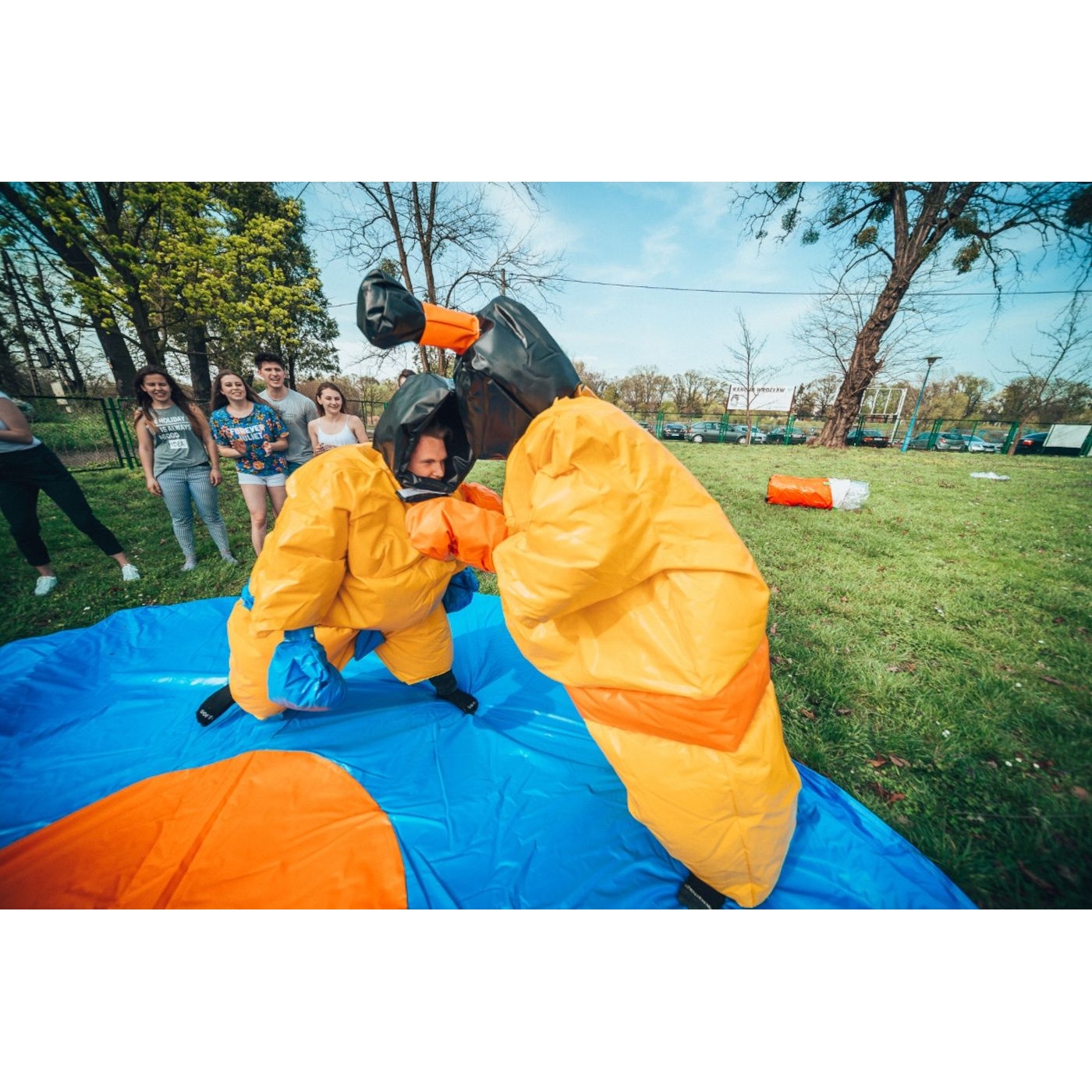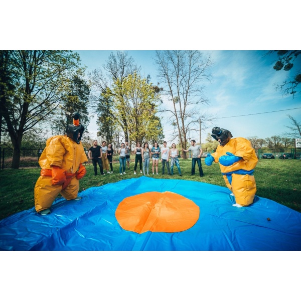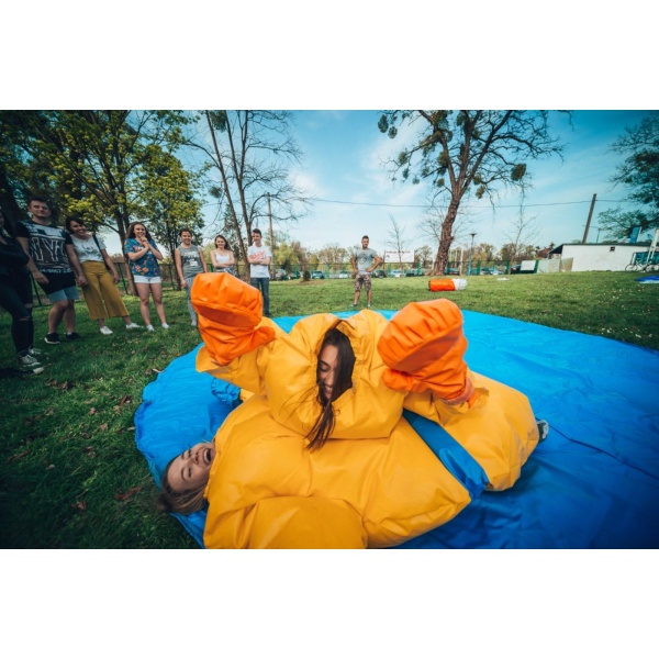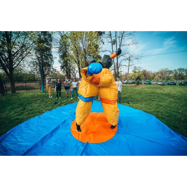 Το Κοστούμια SUMO για παιδιά, συμπεριλαμβανομένων των χαλιών είναι μια φουσκωτή ατραξιόν αφιερωμένη σε όλους όσοι έχουν ανταγωνιστικό πνεύμα. Η διασκέδαση ξεκινά τη στιγμή που ξεκινάς να ανταγωνίζεσαι με άλλους συμμετέχοντες. Το επίπεδο δυσκολίας αυξάνεται ανάλογα με τον βαθμό εμπειρίας και τη φυσική κατάσταση της αντίπαλης ομάδας. Το φουσκωτό προσφέρει έντονα συναισθήματα, αλλά πρόκειται για έναν ασφαλή ανταγωνισμό. Δεν απαιτεί υπερβολική φυσική κατάσταση – σχεδόν όλοι μπορούν να διασκεδάσουν με μια φουσκωτή ατραξιόν ανταγωνισμού. Το Κοστούμια SUMO για παιδιά, συμπεριλαμβανομένων των χαλιών μπορεί να χρησιμοποιηθεί σε υπαίθριο χώρο αλλά και σε κλειστό γυμναστήριο – δηλαδή καθ’ όλη τη διάρκεια του έτους.