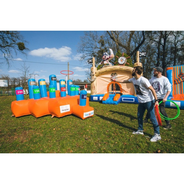 Το Φουσκωτό παιχνίδι Hula Hoop είναι μια φουσκωτή ατραξιόν αφιερωμένη σε όλους όσοι έχουν ανταγωνιστικό πνεύμα. Η διασκέδαση ξεκινά τη στιγμή που ξεκινάς να ανταγωνίζεσαι με άλλους συμμετέχοντες. Το επίπεδο δυσκολίας αυξάνεται ανάλογα με τον βαθμό εμπειρίας και τη φυσική κατάσταση της αντίπαλης ομάδας. Το φουσκωτό προσφέρει έντονα συναισθήματα, αλλά πρόκειται για έναν ασφαλή ανταγωνισμό. Δεν απαιτεί υπερβολική φυσική κατάσταση – σχεδόν όλοι μπορούν να διασκεδάσουν με μια φουσκωτή ατραξιόν ανταγωνισμού. Το Φουσκωτό παιχνίδι Hula Hoop μπορεί να χρησιμοποιηθεί σε υπαίθριο χώρο αλλά και σε κλειστό γυμναστήριο – δηλαδή καθ’ όλη τη διάρκεια του έτους.