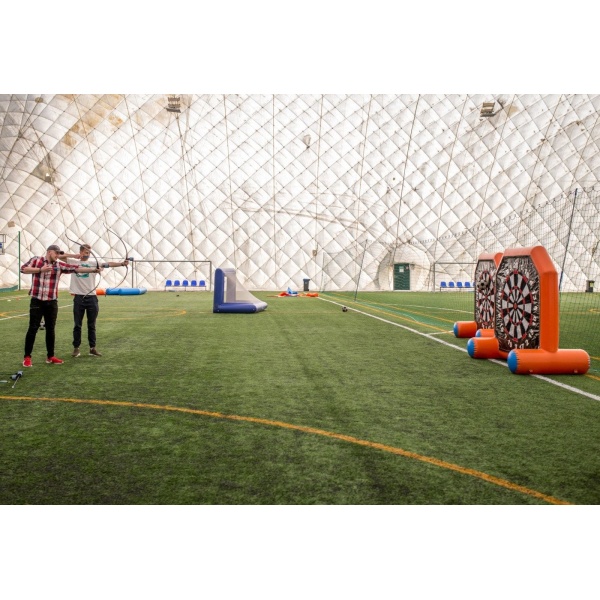 Το Φουσκωτό Mini FootDarts είναι μια φουσκωτή ατραξιόν αφιερωμένη σε όλους όσοι έχουν ανταγωνιστικό πνεύμα. Η διασκέδαση ξεκινά τη στιγμή που ξεκινάς να ανταγωνίζεσαι με άλλους συμμετέχοντες. Το επίπεδο δυσκολίας αυξάνεται ανάλογα με τον βαθμό εμπειρίας και τη φυσική κατάσταση της αντίπαλης ομάδας. Το φουσκωτό προσφέρει έντονα συναισθήματα, αλλά πρόκειται για έναν ασφαλή ανταγωνισμό. Δεν απαιτεί υπερβολική φυσική κατάσταση – σχεδόν όλοι μπορούν να διασκεδάσουν με μια φουσκωτή ατραξιόν ανταγωνισμού. Το Φουσκωτό Mini FootDarts μπορεί να χρησιμοποιηθεί σε υπαίθριο χώρο αλλά και σε κλειστό γυμναστήριο – δηλαδή καθ’ όλη τη διάρκεια του έτους.