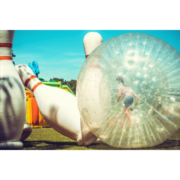 Ανεβάστε τον ανταγωνισμό σε ένα νέο επίπεδο με το σετ Human Bowling! Το σετ περιλαμβάνει 6 τεράστιες φουσκωτές κορύνες μπόουλινγκ και μια μπάλα zorbing 3 μέτρων που επιτρέπει στους συμμετέχοντες να αναλάβουν το ρόλο του ανθρώπινου μπόουλινγκ. Ιδανικό για υπαίθριες εκδηλώσεις, εταιρική ομαδοποίηση και φεστιβάλ, προσφέρει μεγάλη διασκέδαση και υγιή ανταγωνισμό για παιδιά και ενήλικες. Το φουσκωτό είναι εύκολο στη συναρμολόγηση και ασφαλές για όλους τους συμμετέχοντες.