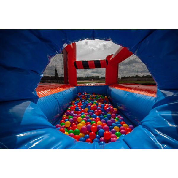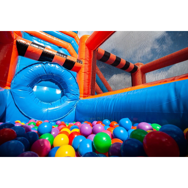 Όπως όλες οι φουσκωτές ατραξιόν μας, το προϊόν είναι κατασκευασμένο από υλικά υψηλής ποιότητας – σε αυτή την περίπτωση από PVC νέας γενιάς με υψηλή αντοχή στο σκίσιμο. Το Gangaru διογκώσιμο - κάστρο bouncy με ξηρή πισίνα έχει διαστάσεις 5,5 m x 3,4 m x 2 m (μήκος, πλάτος και ύψος). Πληροί το πρότυπο ασφαλείας EN 14960 για φουσκωτό εξοπλισμό ψυχαγωγίας. Συνιστούμε τη χρήση φυσητήρων για το φούσκωμα – τους περιλαμβάνουμε στο σετ. Όπως οι περισσότερες από τις ατραξιόν μας, το φουσκωτό καλύπτεται από διετή εγγύηση. Στη Gangaru φροντίζουμε να έχεις όσο το δυνατόν λιγότερες έγνοιες – με το φουσκωτό παρέχουμε πλήρες σετ αξεσουάρ για τη στερέωση της ατραξιόν (σχοινιά, πασαλάκια). Το φουσκωτό έχει ελεγχθεί ως προς την ασφάλεια από ανεξάρτητο πραγματογνώμονα.