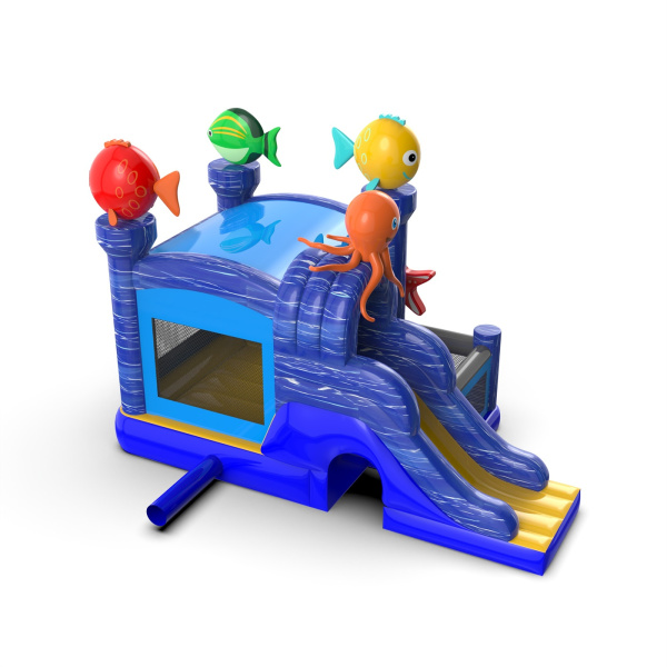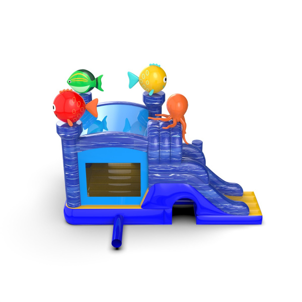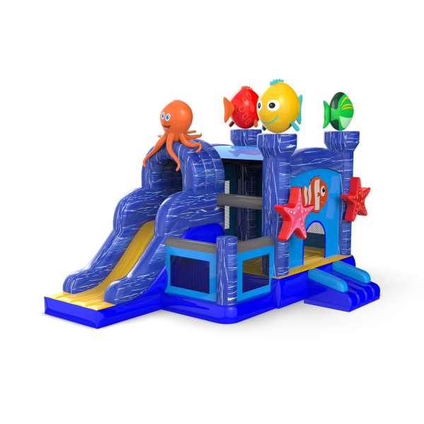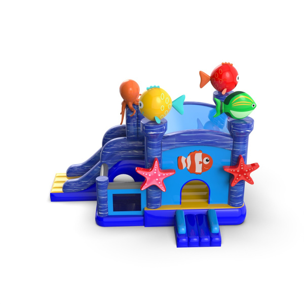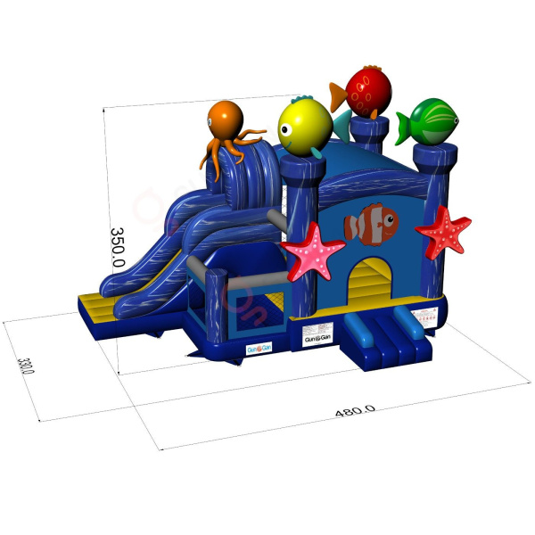 Εξερευνήστε τα βάθη του ωκεανού με αυτό το φουσκωτό, όπου τα παιδιά μπορούν να αναλάβουν το ρόλο των μικρών εξερευνητών του θαλάσσιου κόσμου. Η τσουλήθρα και οι πολύχρωμοι χαρακτήρες των ψαριών, των δελφινιών και των καβουριών προσφέρουν άφθονη διασκέδαση και αναπτύσσουν τη φαντασία των μικρών. Πρόκειται για μια ιδανική ατραξιόν για φεστιβάλ και υπαίθριες εκδηλώσεις, προσφέροντας αξέχαστες στιγμές στους λάτρεις των θαλάσσιων περιπετειών.