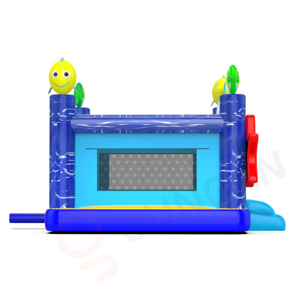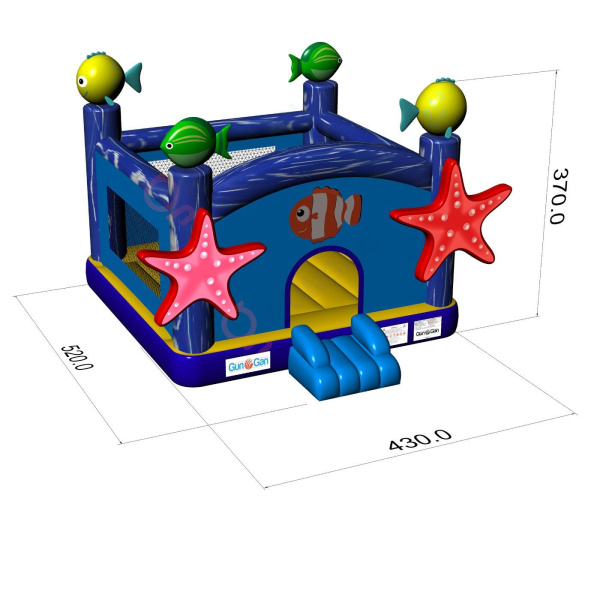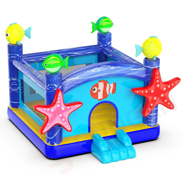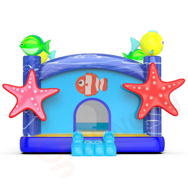 Ένα φουσκωτό φουσκωτό κάστρο με θαλάσσιο θέμα είναι η τέλεια ατραξιόν για τα παιδιά που αγαπούν τις υποβρύχιες περιπέτειες. Οι πολύχρωμες διακοσμήσεις με το μοτίβο των ψαριών, των κοραλλιών και άλλων θαλάσσιων πλασμάτων θα παρασύρουν τα μικρά παιδιά στον συναρπαστικό κόσμο των ωκεανών. Ιδανικό για υπαίθρια πάρτι και γιορτές, προσφέρει ώρες διασκέδασης γεμάτες άλματα και χαρά.