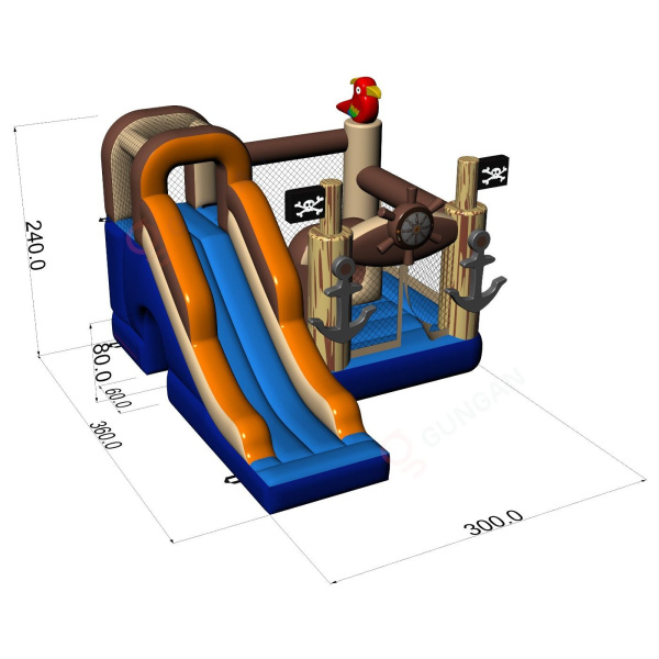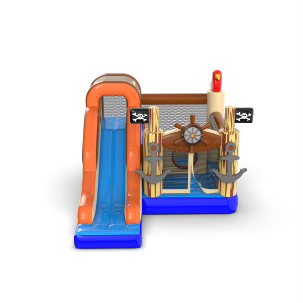 Ένα μικρό φουσκωτό κάστρο με τσουλήθρα σε πειρατικό θέμα είναι η τέλεια ατραξιόν για τους μικρούς εξερευνητές που θέλουν να ζήσουν μια καταπληκτική περιπέτεια στη θάλασσα. Οι εντυπωσιακές διακοσμήσεις σε πειρατικό στιλ ενθαρρύνουν τα παιδιά να πηδούν και να παίζουν και η τσουλήθρα προσθέτει ένα στοιχείο ενθουσιασμού. Αυτό το φουσκωτό είναι η τέλεια επιλογή για φεστιβάλ, πικνίκ και οικογενειακές εκδηλώσεις, παρέχοντας ασφαλή και διασκεδαστική διασκέδαση για τους μικρούς φίλους.