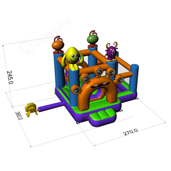 Ένα μικρό φουσκωτό κάστρο με μια στεγνή πισίνα για παιδιά με θέμα τα τέρατα είναι ο ιδανικός πόλος έλξης για τα μικρά παιδιά που θέλουν να εξερευνήσουν τον φανταστικό κόσμο των πολύχρωμων πλασμάτων. Τα παιδιά μπορούν να απολαύσουν τη χαρούμενη διασκέδαση πηδώντας και αναλαμβάνοντας τους ρόλους των αγαπημένων τους τεράτων, ενώ η στεγνή πισίνα προσφέρει επιπλέον διασκέδαση. Είναι η ιδανική επιλογή για οικογενειακά πάρτι, φεστιβάλ και υπαίθριες εκδηλώσεις, προσφέροντας αξέχαστες στιγμές γεμάτες χαμόγελα.