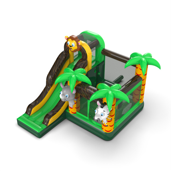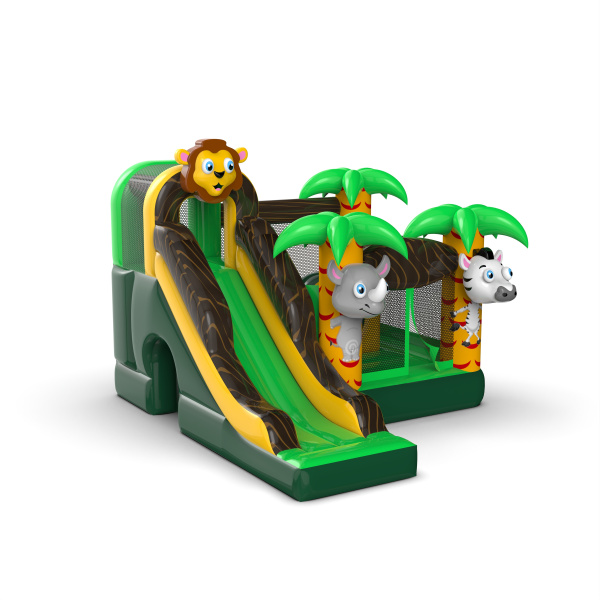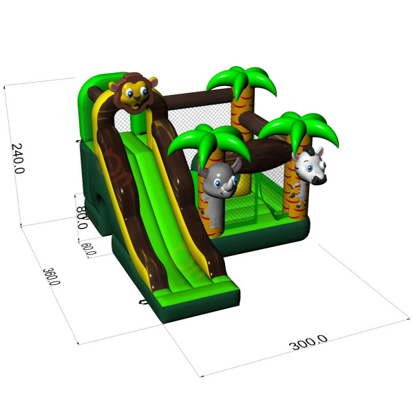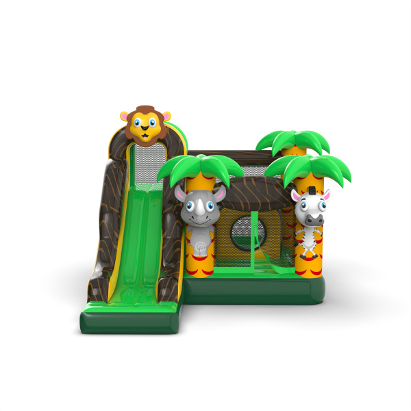 Το Μικρό φουσκωτό κάστρο με τσουλήθρα για παιδιά - θέμα ζούγκλας είναι μια ατραξιόν για όλους τους λάτρεις του χαρούμενου άλματος. Τα παιδιά διασκεδάζουν υπέροχα – πηδούν και υποδύονται ρόλους που ταιριάζουν στο θέμα της ατραξιόν. Το Μικρό φουσκωτό κάστρο με τσουλήθρα για παιδιά - θέμα ζούγκλας έχει σχεδιαστεί όχι μόνο για πολύ μικρά παιδιά. Τα φουσκωτά αυτής της κατηγορίας είναι συνήθως πλούσια διακοσμημένα και περιέχουν πολλά στοιχεία που προσκαλούν σε ξέγνοιαστο άλμα στον καθαρό αέρα. Τα φουσκωτά κάστρα μπορούν να δημιουργήσουν έναν φανταστικό κόσμο εμπειριών μέσα από χαρούμενα άλματα με φίλους και συνομηλίκους. Το φουσκωτό κάστρο μπορεί να συνδυαστεί με άλλα προϊόντα από την προσφορά μας, δημιουργώντας έτσι έναν μαγικό, παραμυθένιο κόσμο εμπειριών για ώρες διασκέδασης και χαράς.