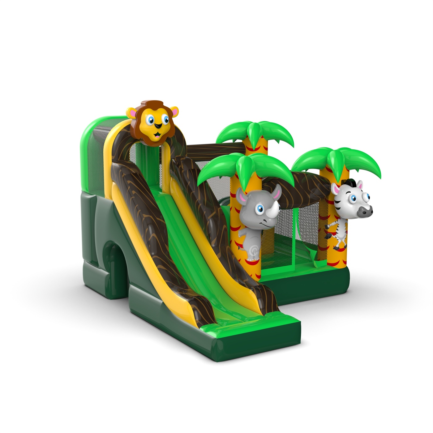 Ένα μικρό φουσκωτό κάστρο με τσουλήθρα σε θέμα ζούγκλας προσφέρει στα παιδιά μοναδική διασκέδαση γεμάτη περιπέτεια! Τα τροπικά μοτίβα και τα ζωηρά χρώματα μεταφέρουν τα μικρά παιδιά στην καρδιά της ζούγκλας, ενθαρρύνοντας το ενεργό παιχνίδι. Ιδανική επιλογή για ποικίλες υπαίθριες εκδηλώσεις.