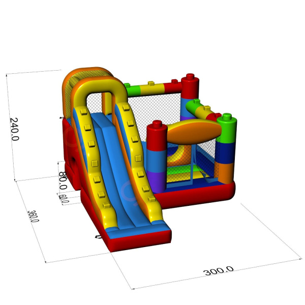 Το Μικρό φουσκωτό κάστρο με τσουλήθρα για παιδιά - Χρωματιστά μπλοκ είναι μια ατραξιόν για όλους τους λάτρεις του χαρούμενου άλματος. Τα παιδιά διασκεδάζουν υπέροχα – πηδούν και υποδύονται ρόλους που ταιριάζουν στο θέμα της ατραξιόν. Το Μικρό φουσκωτό κάστρο με τσουλήθρα για παιδιά - Χρωματιστά μπλοκ έχει σχεδιαστεί όχι μόνο για πολύ μικρά παιδιά. Τα φουσκωτά αυτής της κατηγορίας είναι συνήθως πλούσια διακοσμημένα και περιέχουν πολλά στοιχεία που προσκαλούν σε ξέγνοιαστο άλμα στον καθαρό αέρα. Τα φουσκωτά κάστρα μπορούν να δημιουργήσουν έναν φανταστικό κόσμο εμπειριών μέσα από χαρούμενα άλματα με φίλους και συνομηλίκους. Το φουσκωτό κάστρο μπορεί να συνδυαστεί με άλλα προϊόντα από την προσφορά μας, δημιουργώντας έτσι έναν μαγικό, παραμυθένιο κόσμο εμπειριών για ώρες διασκέδασης και χαράς.