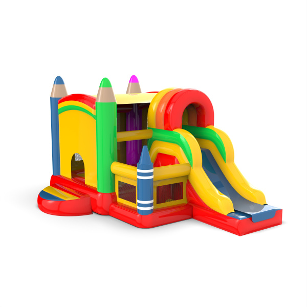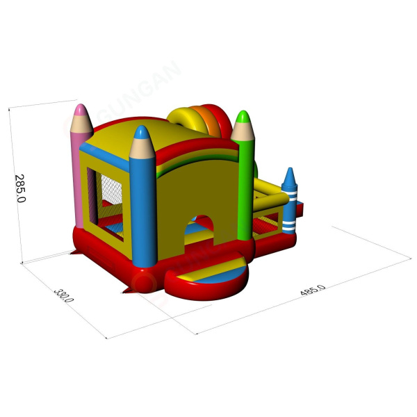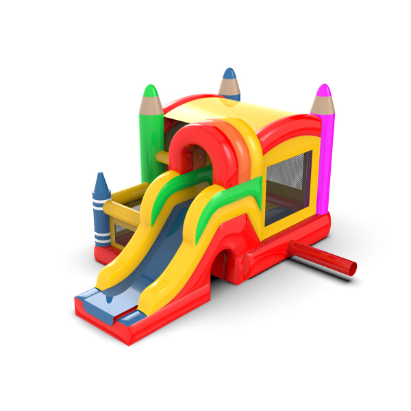 Το φουσκωτό κάστρο combo με κραγιόνια είναι μια πολύχρωμη ατραξιόν που θα μεταφέρει τα παιδιά σε έναν κόσμο διασκέδασης που θυμίζει ζωγραφική σε ένα αγαπημένο βιβλίο. Με αποχρώσεις του ουράνιου τόξου, τα μικρά παιδιά θα μπορούν να πηδούν και να παίζουν, αναπτύσσοντας τη φαντασία τους σε ένα ασφαλές περιβάλλον. Αποτελεί την ιδανική επιλογή για υπαίθρια πάρτι και θα προσφέρει στα παιδιά αξέχαστες στιγμές χαράς και χαμόγελου!