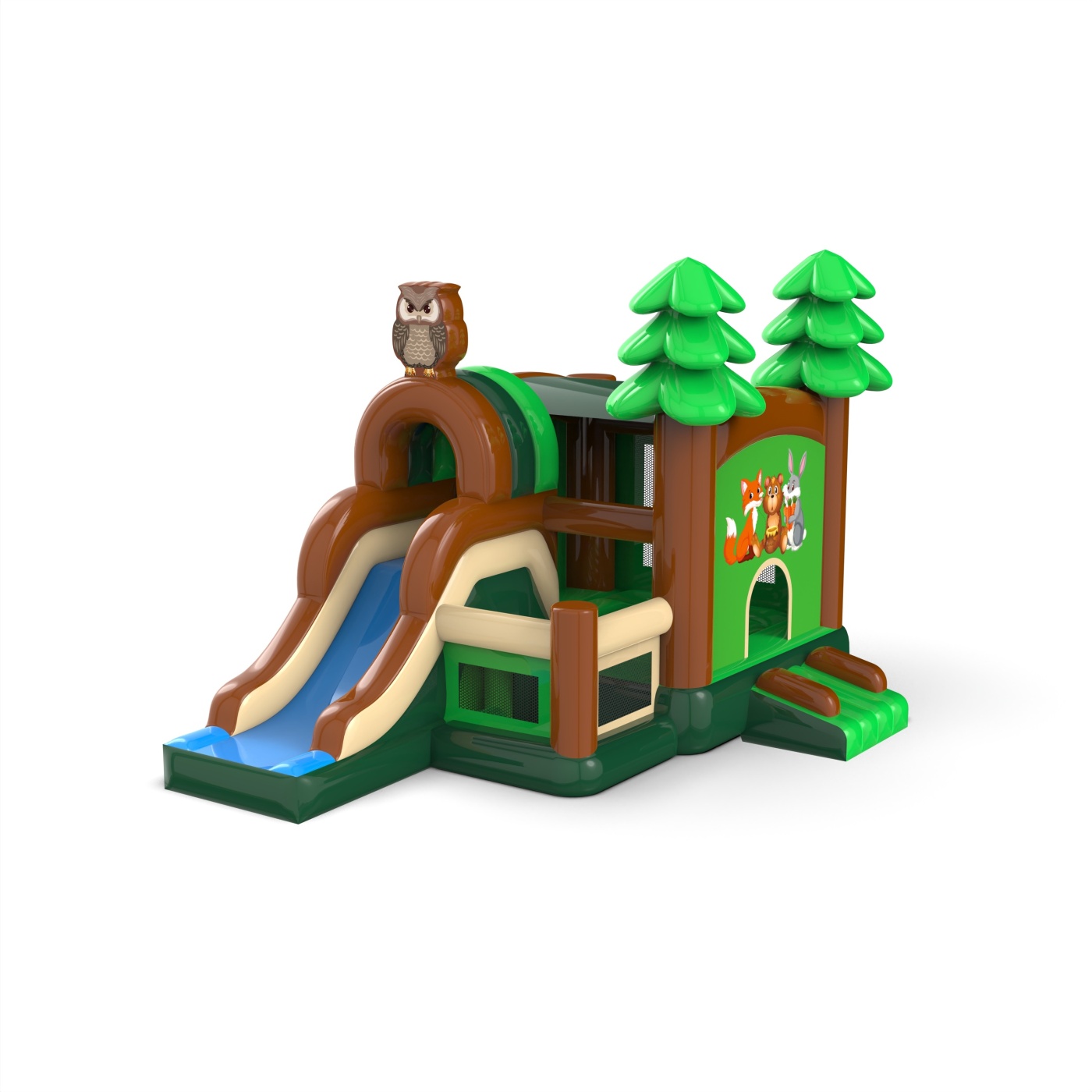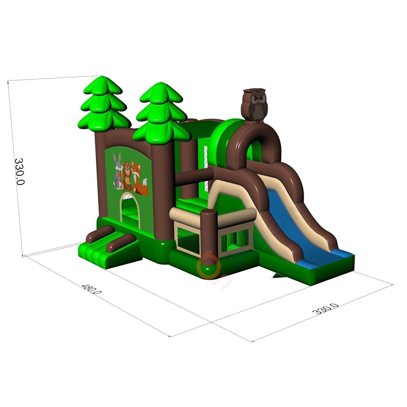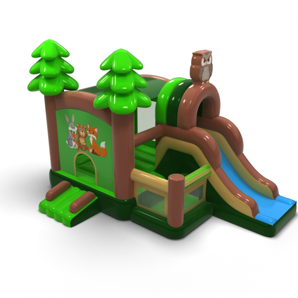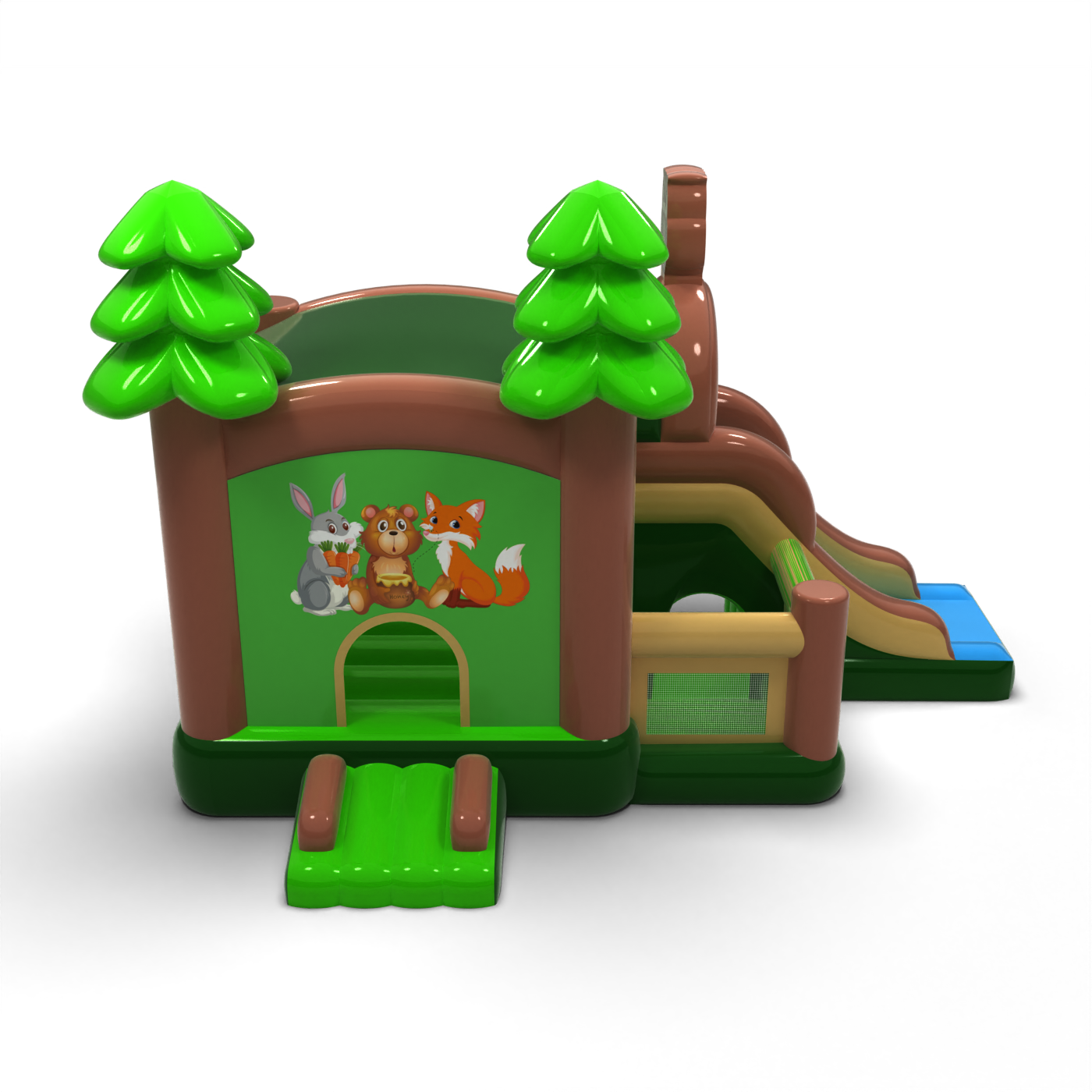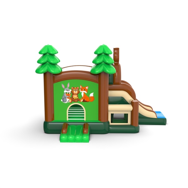 Το Bouncy κάστρο δάσος combo είναι μια ατραξιόν για όλους τους λάτρεις του χαρούμενου άλματος. Τα παιδιά διασκεδάζουν υπέροχα – πηδούν και υποδύονται ρόλους που ταιριάζουν στο θέμα της ατραξιόν. Το Bouncy κάστρο δάσος combo έχει σχεδιαστεί όχι μόνο για πολύ μικρά παιδιά. Τα φουσκωτά αυτής της κατηγορίας είναι συνήθως πλούσια διακοσμημένα και περιέχουν πολλά στοιχεία που προσκαλούν σε ξέγνοιαστο άλμα στον καθαρό αέρα. Τα φουσκωτά κάστρα μπορούν να δημιουργήσουν έναν φανταστικό κόσμο εμπειριών μέσα από χαρούμενα άλματα με φίλους και συνομηλίκους. Το φουσκωτό κάστρο μπορεί να συνδυαστεί με άλλα προϊόντα από την προσφορά μας, δημιουργώντας έτσι έναν μαγικό, παραμυθένιο κόσμο εμπειριών για ώρες διασκέδασης και χαράς.