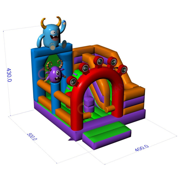 Το Φουσκωτή τσουλήθρα με θέμα τέρας είναι μια ατραξιόν για όλους τους λάτρεις του χαρούμενου άλματος. Τα παιδιά διασκεδάζουν υπέροχα – πηδούν και υποδύονται ρόλους που ταιριάζουν στο θέμα της ατραξιόν. Το Φουσκωτή τσουλήθρα με θέμα τέρας έχει σχεδιαστεί όχι μόνο για πολύ μικρά παιδιά. Τα φουσκωτά αυτής της κατηγορίας είναι συνήθως πλούσια διακοσμημένα και περιέχουν πολλά στοιχεία που προσκαλούν σε ξέγνοιαστο άλμα στον καθαρό αέρα. Τα φουσκωτά κάστρα μπορούν να δημιουργήσουν έναν φανταστικό κόσμο εμπειριών μέσα από χαρούμενα άλματα με φίλους και συνομηλίκους. Το φουσκωτό κάστρο μπορεί να συνδυαστεί με άλλα προϊόντα από την προσφορά μας, δημιουργώντας έτσι έναν μαγικό, παραμυθένιο κόσμο εμπειριών για ώρες διασκέδασης και χαράς.