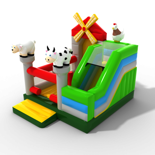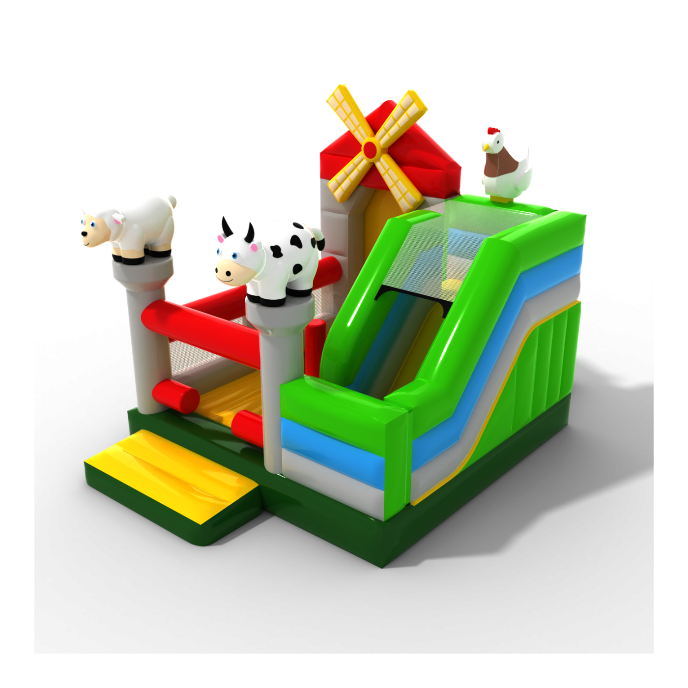 Μια φουσκωτή τσουλήθρα με θέμα το αγρόκτημα είναι ένα μοναδικό αξιοθέατο που θα μεταφέρει τα παιδιά σε έναν κόσμο αγροτικής περιπέτειας. Οι γοητευτικές διακοσμήσεις με τα ζώα της υπαίθρου και τα πολύχρωμα στοιχεία ενθαρρύνουν τα νήπια να παίξουν με χαρά, αναπτύσσοντας τη φαντασία τους σε ένα ασφαλές περιβάλλον. Ιδανικό για υπαίθρια πάρτι, γιορτές και γενέθλια, αυτό το φουσκωτό εγγυάται αξέχαστες στιγμές διασκέδασης και υπαίθριας δραστηριότητας!