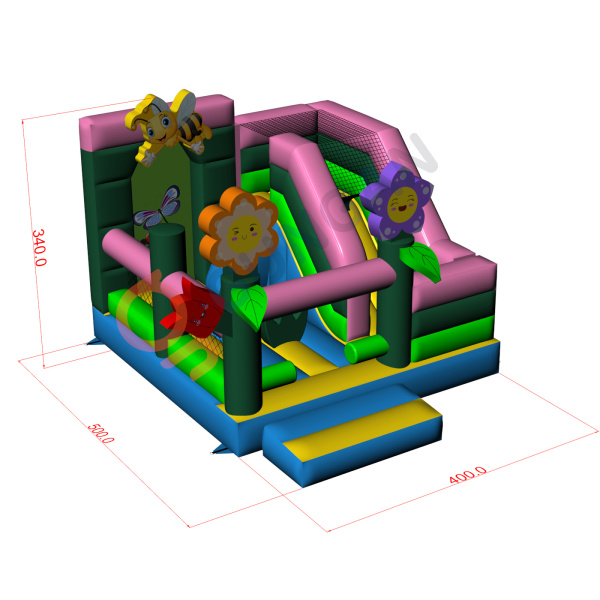 Διακοσμημένο με μοτίβα λουλουδιών αγρού και χαρούμενα χρώματα, αυτό το φουσκωτό είναι το ιδανικό μέρος για να παίξουν τα παιδιά και να μάθουν για τον κόσμο των εντόμων, όπως οι μέλισσες και τα σκουλήκια. Κατασκευασμένο από υλικά υψηλής ποιότητας και πληροί όλες τις προδιαγραφές ασφαλείας, προσφέρει όχι μόνο διασκέδαση αλλά και ένα ασφαλές περιβάλλον. Ο μοναδικός του σχεδιασμός το καθιστά ιδανική επιλογή για κάθε περίσταση, από πάρτι γενεθλίων μέχρι εταιρικές εκδηλώσεις.