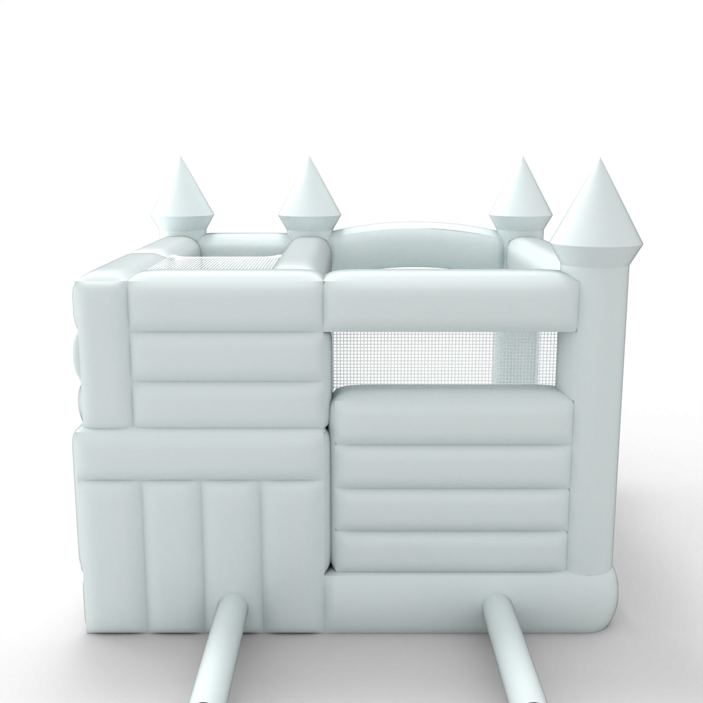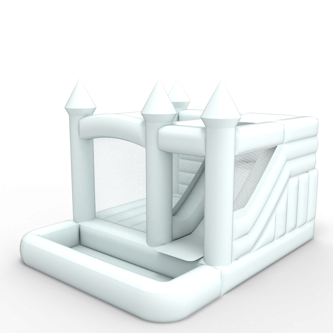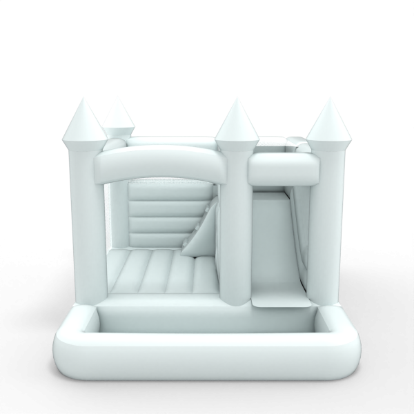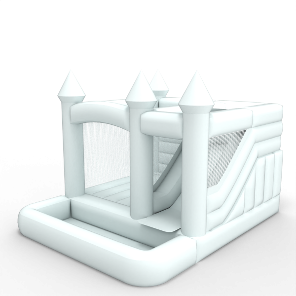 Το Κάστρο Bouncy με τσουλήθρα και πισίνα σε λευκό θέμα είναι μια ατραξιόν για όλους τους λάτρεις του χαρούμενου άλματος. Τα παιδιά διασκεδάζουν υπέροχα – πηδούν και υποδύονται ρόλους που ταιριάζουν στο θέμα της ατραξιόν. Το Κάστρο Bouncy με τσουλήθρα και πισίνα σε λευκό θέμα έχει σχεδιαστεί όχι μόνο για πολύ μικρά παιδιά. Τα φουσκωτά αυτής της κατηγορίας είναι συνήθως πλούσια διακοσμημένα και περιέχουν πολλά στοιχεία που προσκαλούν σε ξέγνοιαστο άλμα στον καθαρό αέρα. Τα φουσκωτά κάστρα μπορούν να δημιουργήσουν έναν φανταστικό κόσμο εμπειριών μέσα από χαρούμενα άλματα με φίλους και συνομηλίκους. Το φουσκωτό κάστρο μπορεί να συνδυαστεί με άλλα προϊόντα από την προσφορά μας, δημιουργώντας έτσι έναν μαγικό, παραμυθένιο κόσμο εμπειριών για ώρες διασκέδασης και χαράς.