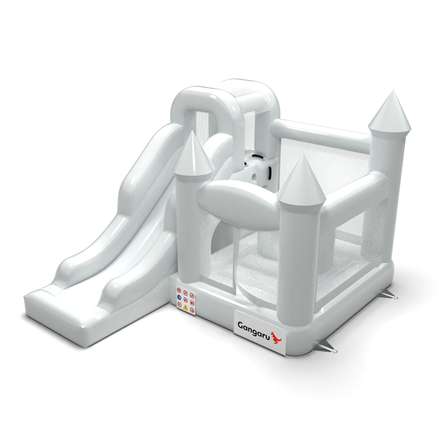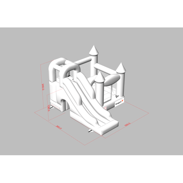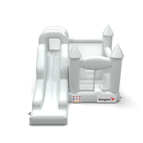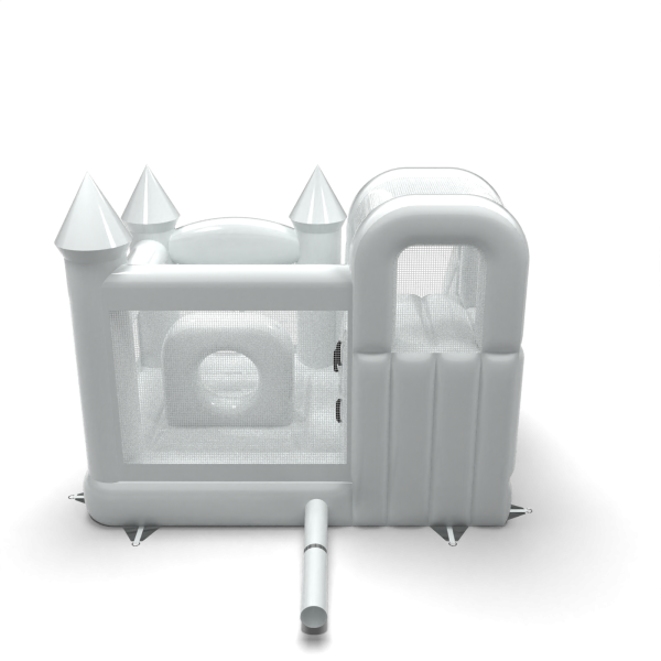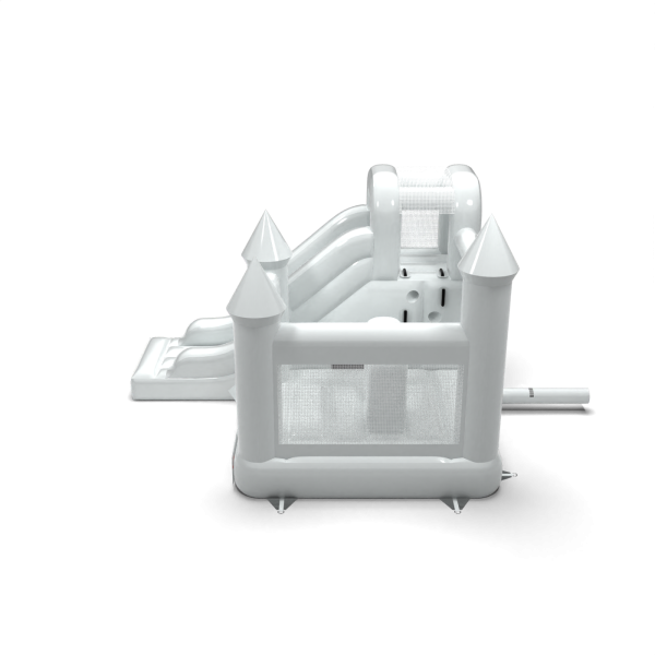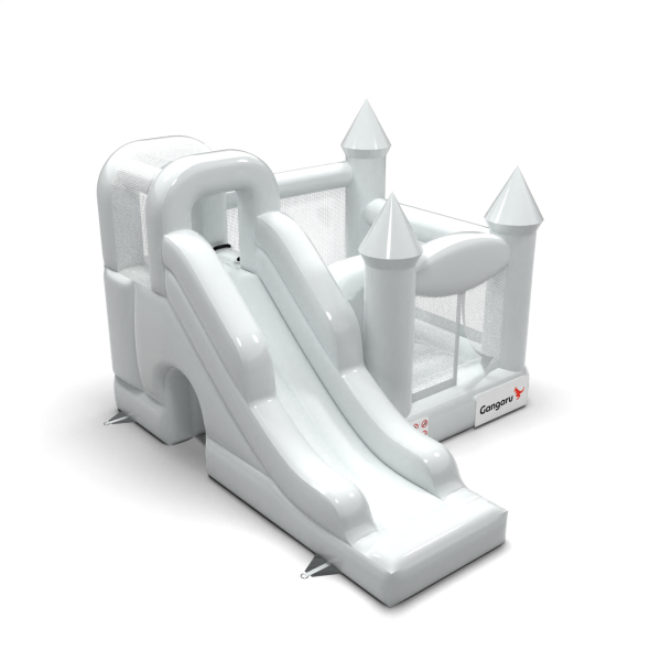 Το Κάστρο Bouncy με τσουλήθρα σε λευκό θέμα είναι μια ατραξιόν για όλους τους λάτρεις του χαρούμενου άλματος. Τα παιδιά διασκεδάζουν υπέροχα – πηδούν και υποδύονται ρόλους που ταιριάζουν στο θέμα της ατραξιόν. Το Κάστρο Bouncy με τσουλήθρα σε λευκό θέμα έχει σχεδιαστεί όχι μόνο για πολύ μικρά παιδιά. Τα φουσκωτά αυτής της κατηγορίας είναι συνήθως πλούσια διακοσμημένα και περιέχουν πολλά στοιχεία που προσκαλούν σε ξέγνοιαστο άλμα στον καθαρό αέρα. Τα φουσκωτά κάστρα μπορούν να δημιουργήσουν έναν φανταστικό κόσμο εμπειριών μέσα από χαρούμενα άλματα με φίλους και συνομηλίκους. Το φουσκωτό κάστρο μπορεί να συνδυαστεί με άλλα προϊόντα από την προσφορά μας, δημιουργώντας έτσι έναν μαγικό, παραμυθένιο κόσμο εμπειριών για ώρες διασκέδασης και χαράς.
