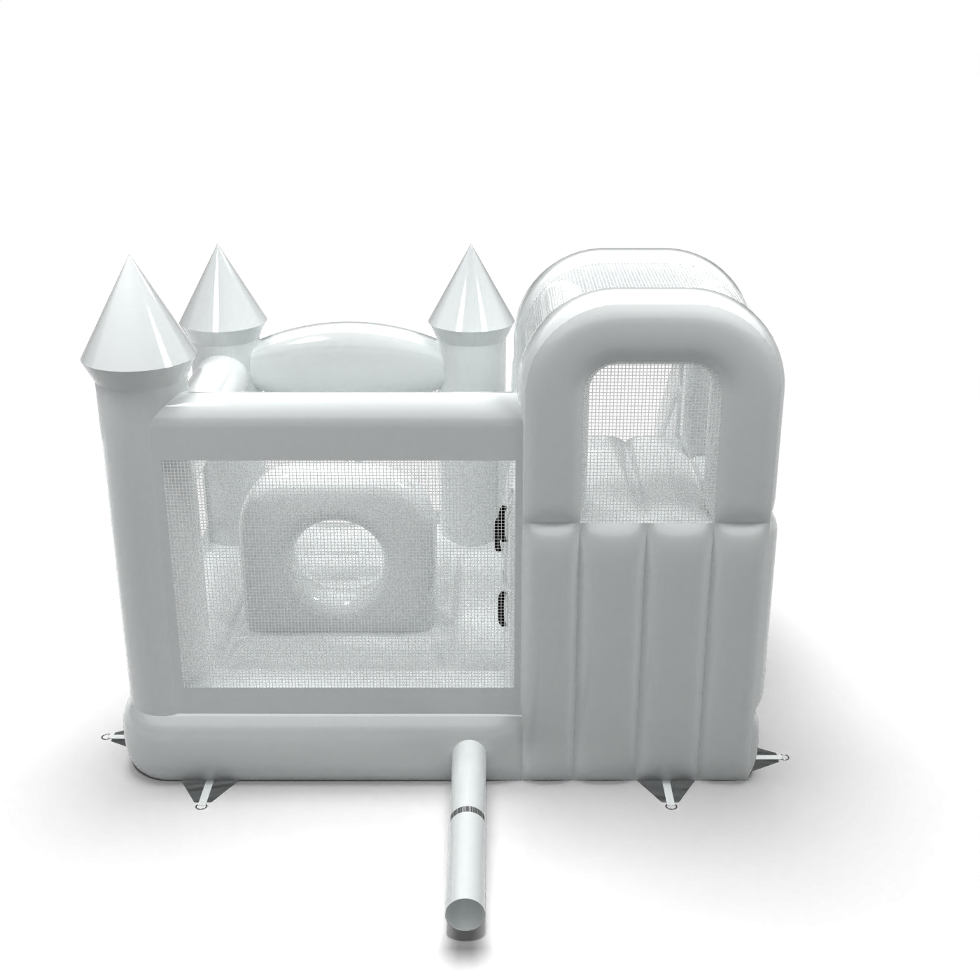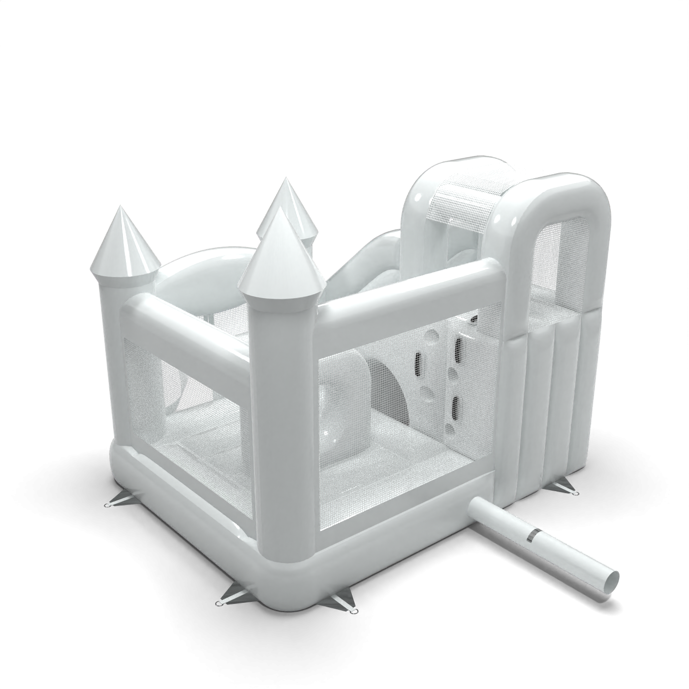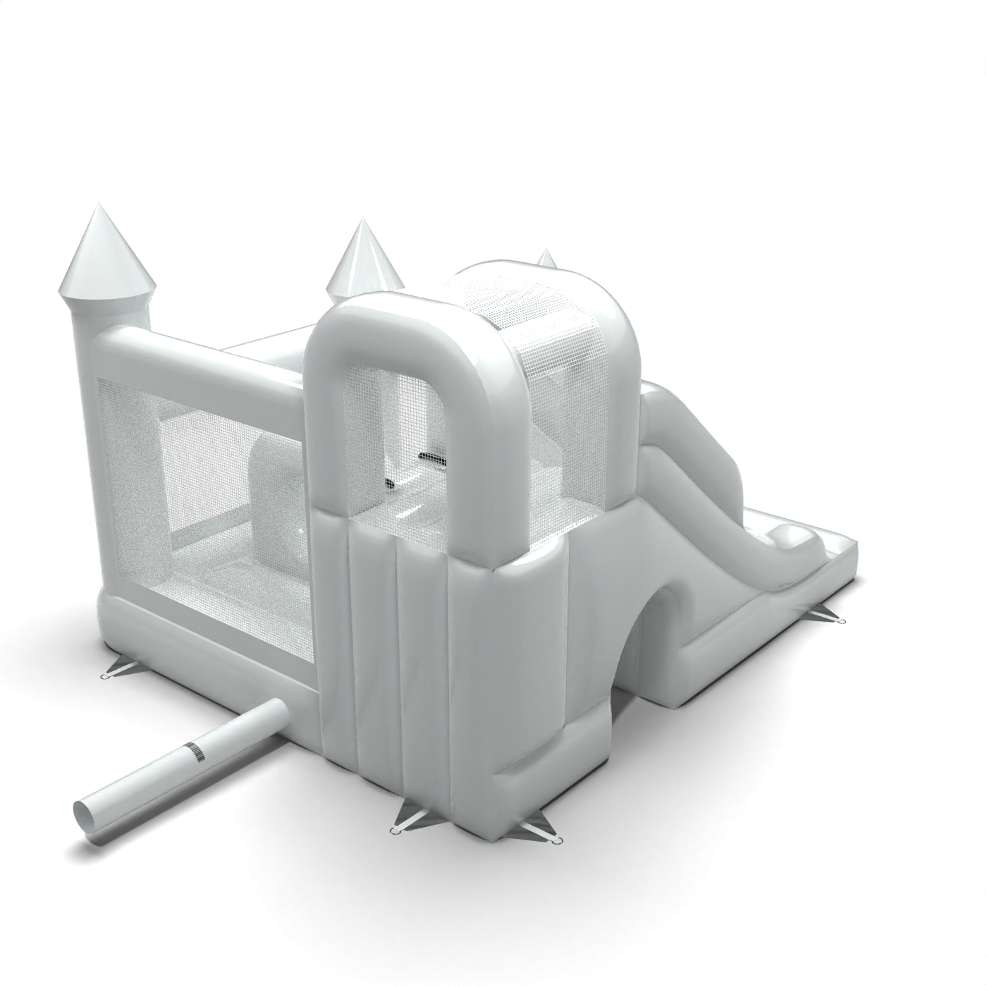Το Κάστρο Bouncy με τσουλήθρα σε λευκό θέμα είναι μια ατραξιόν για όλους τους λάτρεις του χαρούμενου άλματος. Τα παιδιά διασκεδάζουν υπέροχα – πηδούν και υποδύονται ρόλους που ταιριάζουν στο θέμα της ατραξιόν. Το Κάστρο Bouncy με τσουλήθρα σε λευκό θέμα έχει σχεδιαστεί όχι μόνο για πολύ μικρά παιδιά. Τα φουσκωτά αυτής της κατηγορίας είναι συνήθως πλούσια διακοσμημένα και περιέχουν πολλά στοιχεία που προσκαλούν σε ξέγνοιαστο άλμα στον καθαρό αέρα. Τα φουσκωτά κάστρα μπορούν να δημιουργήσουν έναν φανταστικό κόσμο εμπειριών μέσα από χαρούμενα άλματα με φίλους και συνομηλίκους. Το φουσκωτό κάστρο μπορεί να συνδυαστεί με άλλα προϊόντα από την προσφορά μας, δημιουργώντας έτσι έναν μαγικό, παραμυθένιο κόσμο εμπειριών για ώρες διασκέδασης και χαράς.