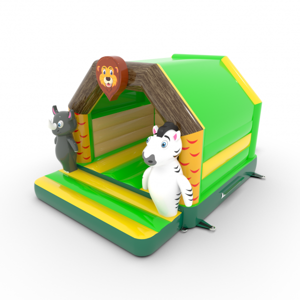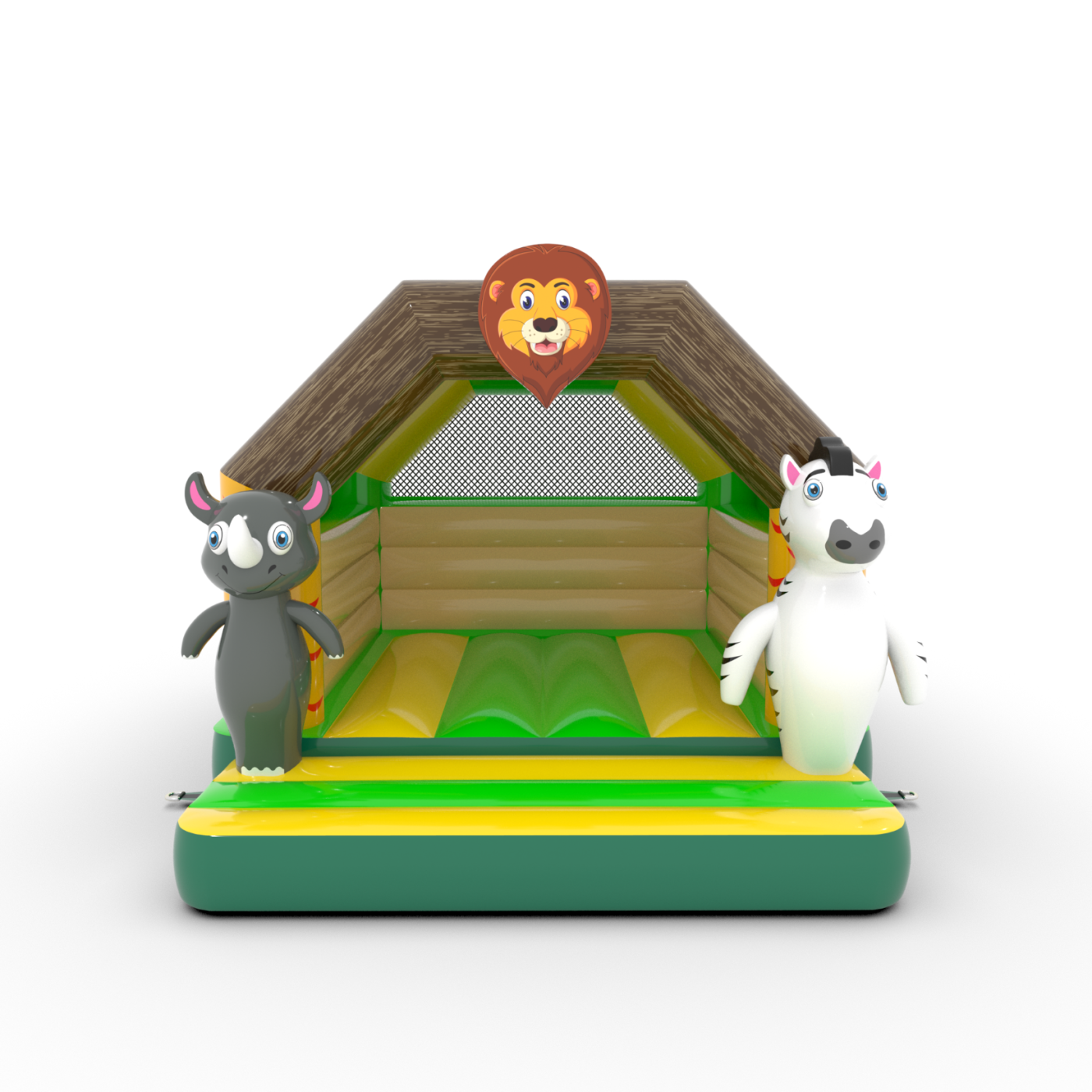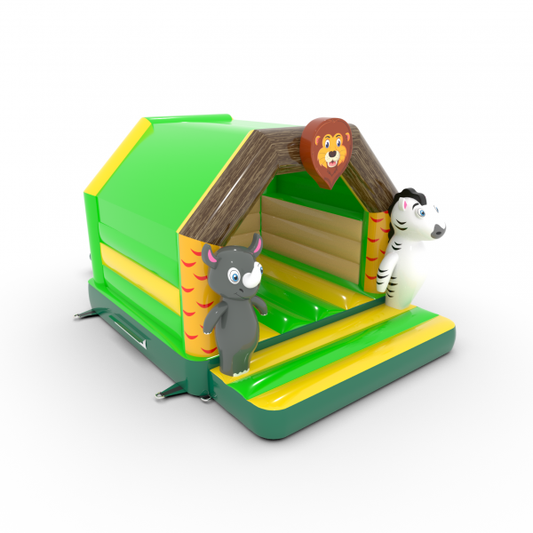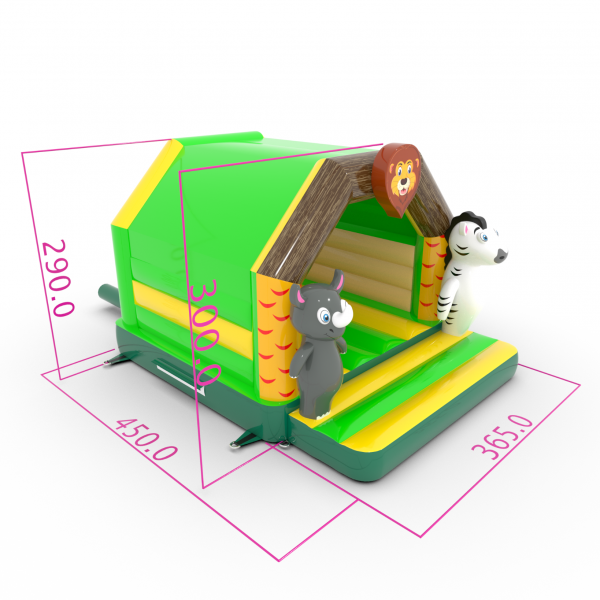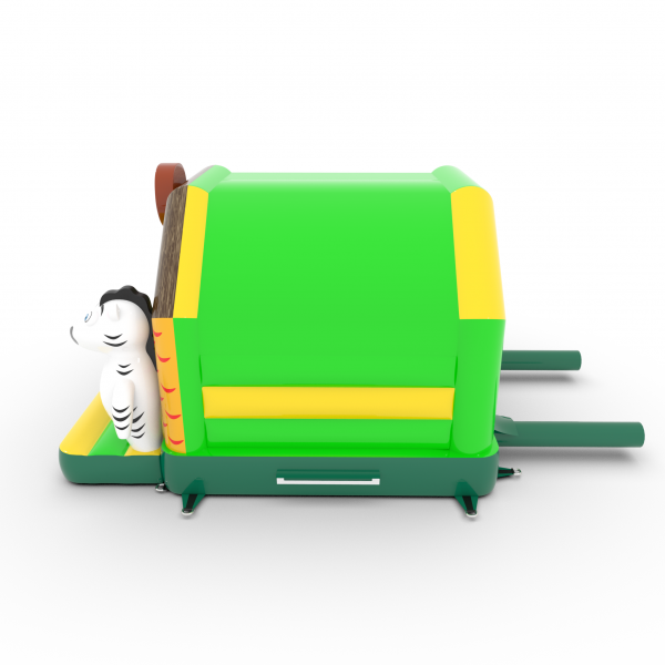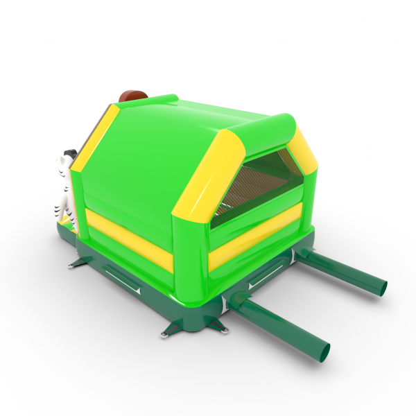 Το κάστρο με θέμα τη ζούγκλα 4,5x3,6 μ. είναι μια μοναδική ατραξιόν για τους μικρούς εξερευνητές! Ξεχωρίζει με διακοσμήσεις σε σχήμα άγριων ζώων, όπως ένας ρινόκερος και μια ζέβρα, και ένα ζωηρό πράσινο χρώμα. Ιδανικό για υπαίθριες εκδηλώσεις όπου το δημιουργικό παιχνίδι είναι σημαντικό.
