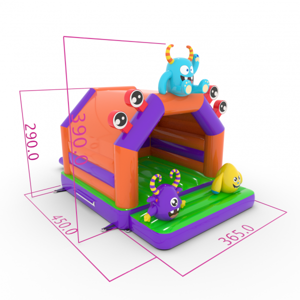 Το 4.5x3.6 κάστρο αναπήδησης με θέμα τέρας είναι μια ατραξιόν για όλους τους λάτρεις του χαρούμενου άλματος. Τα παιδιά διασκεδάζουν υπέροχα – πηδούν και υποδύονται ρόλους που ταιριάζουν στο θέμα της ατραξιόν. Το 4.5x3.6 κάστρο αναπήδησης με θέμα τέρας έχει σχεδιαστεί όχι μόνο για πολύ μικρά παιδιά. Τα φουσκωτά αυτής της κατηγορίας είναι συνήθως πλούσια διακοσμημένα και περιέχουν πολλά στοιχεία που προσκαλούν σε ξέγνοιαστο άλμα στον καθαρό αέρα. Τα φουσκωτά κάστρα μπορούν να δημιουργήσουν έναν φανταστικό κόσμο εμπειριών μέσα από χαρούμενα άλματα με φίλους και συνομηλίκους. Το φουσκωτό κάστρο μπορεί να συνδυαστεί με άλλα προϊόντα από την προσφορά μας, δημιουργώντας έτσι έναν μαγικό, παραμυθένιο κόσμο εμπειριών για ώρες διασκέδασης και χαράς.