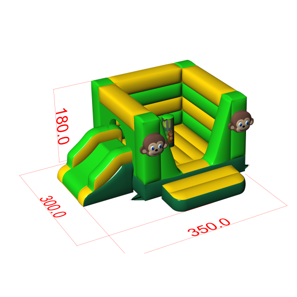 Το Μικρό φουσκωτό κάστρο με τσουλήθρα - σε θέμα ζούγκλας είναι μια ατραξιόν για όλους τους λάτρεις του χαρούμενου άλματος. Τα παιδιά διασκεδάζουν υπέροχα – πηδούν και υποδύονται ρόλους που ταιριάζουν στο θέμα της ατραξιόν. Το Μικρό φουσκωτό κάστρο με τσουλήθρα - σε θέμα ζούγκλας έχει σχεδιαστεί όχι μόνο για πολύ μικρά παιδιά. Τα φουσκωτά αυτής της κατηγορίας είναι συνήθως πλούσια διακοσμημένα και περιέχουν πολλά στοιχεία που προσκαλούν σε ξέγνοιαστο άλμα στον καθαρό αέρα. Τα φουσκωτά κάστρα μπορούν να δημιουργήσουν έναν φανταστικό κόσμο εμπειριών μέσα από χαρούμενα άλματα με φίλους και συνομηλίκους. Το φουσκωτό κάστρο μπορεί να συνδυαστεί με άλλα προϊόντα από την προσφορά μας, δημιουργώντας έτσι έναν μαγικό, παραμυθένιο κόσμο εμπειριών για ώρες διασκέδασης και χαράς.
