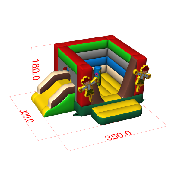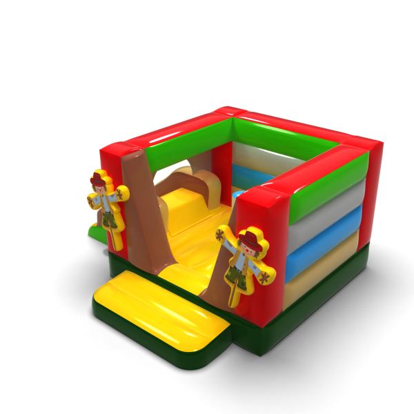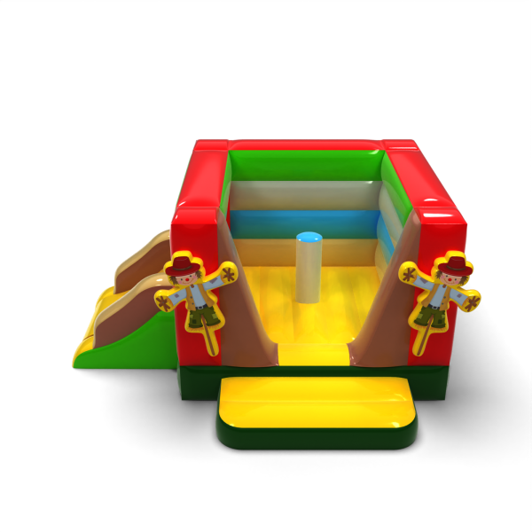 Το Μικρό φουσκωτό κάστρο με τσουλήθρα - σε θέμα αγρότη είναι μια ατραξιόν για όλους τους λάτρεις του χαρούμενου άλματος. Τα παιδιά διασκεδάζουν υπέροχα – πηδούν και υποδύονται ρόλους που ταιριάζουν στο θέμα της ατραξιόν. Το Μικρό φουσκωτό κάστρο με τσουλήθρα - σε θέμα αγρότη έχει σχεδιαστεί όχι μόνο για πολύ μικρά παιδιά. Τα φουσκωτά αυτής της κατηγορίας είναι συνήθως πλούσια διακοσμημένα και περιέχουν πολλά στοιχεία που προσκαλούν σε ξέγνοιαστο άλμα στον καθαρό αέρα. Τα φουσκωτά κάστρα μπορούν να δημιουργήσουν έναν φανταστικό κόσμο εμπειριών μέσα από χαρούμενα άλματα με φίλους και συνομηλίκους. Το φουσκωτό κάστρο μπορεί να συνδυαστεί με άλλα προϊόντα από την προσφορά μας, δημιουργώντας έτσι έναν μαγικό, παραμυθένιο κόσμο εμπειριών για ώρες διασκέδασης και χαράς.