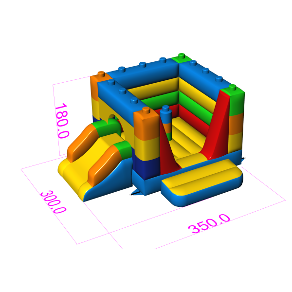 Το Μικρό κάστρο αναπήδησης κλειστό με τσουλήθρα - σε πολύχρωμο μοτίβο από μπλοκ είναι μια ατραξιόν για όλους τους λάτρεις του χαρούμενου άλματος. Τα παιδιά διασκεδάζουν υπέροχα – πηδούν και υποδύονται ρόλους που ταιριάζουν στο θέμα της ατραξιόν. Το Μικρό κάστρο αναπήδησης κλειστό με τσουλήθρα - σε πολύχρωμο μοτίβο από μπλοκ έχει σχεδιαστεί όχι μόνο για πολύ μικρά παιδιά. Τα φουσκωτά αυτής της κατηγορίας είναι συνήθως πλούσια διακοσμημένα και περιέχουν πολλά στοιχεία που προσκαλούν σε ξέγνοιαστο άλμα στον καθαρό αέρα. Τα φουσκωτά κάστρα μπορούν να δημιουργήσουν έναν φανταστικό κόσμο εμπειριών μέσα από χαρούμενα άλματα με φίλους και συνομηλίκους. Το φουσκωτό κάστρο μπορεί να συνδυαστεί με άλλα προϊόντα από την προσφορά μας, δημιουργώντας έτσι έναν μαγικό, παραμυθένιο κόσμο εμπειριών για ώρες διασκέδασης και χαράς.