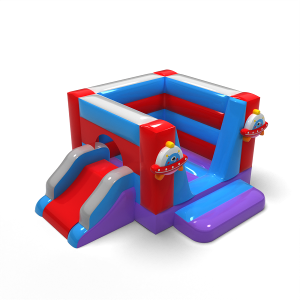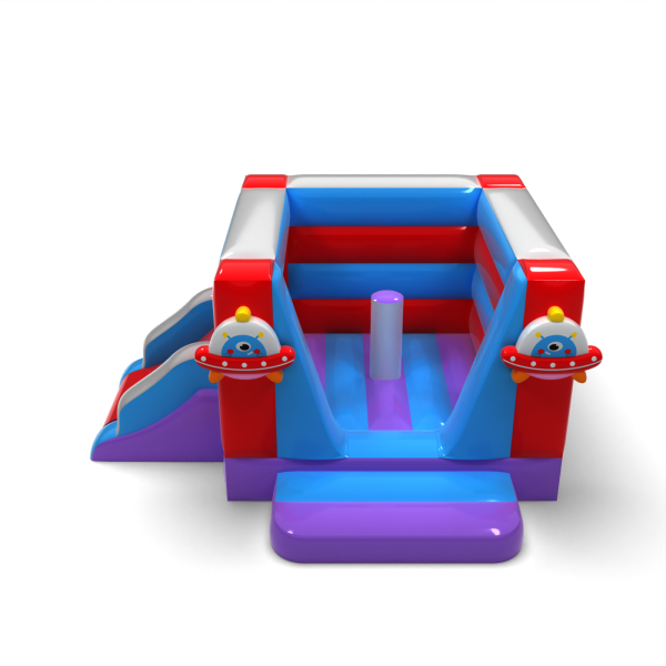 Η έκδοση με τη διαστημική ψευτοπαλλικαρά με τσουλήθρα είναι μια πρόσθετη ατραξιόν που παρατείνει το χρόνο παιχνιδιού και ενθαρρύνει τη σωματική δραστηριότητα. Τα πολύχρωμα στοιχεία και τα μοτίβα ιπτάμενου δίσκου δημιουργούν μια φιλόξενη ατμόσφαιρα, ενώ το συμπαγές μέγεθός του επιτρέπει την εγκατάστασή του τόσο σε εξωτερικούς όσο και σε εσωτερικούς χώρους. Πρόκειται για μια πρακτική λύση για τη βιομηχανία HoReCa και τους διοργανωτές εκδηλώσεων που θέλουν να προσφέρουν στα παιδιά έναν ελκυστικό και ασφαλή χώρο παιχνιδιού. Εξασφαλίστε ένα σύγχρονο εστιακό σημείο που μπορεί εύκολα να προσαρμοστεί σε διαφορετικά σενάρια εκδηλώσεων.