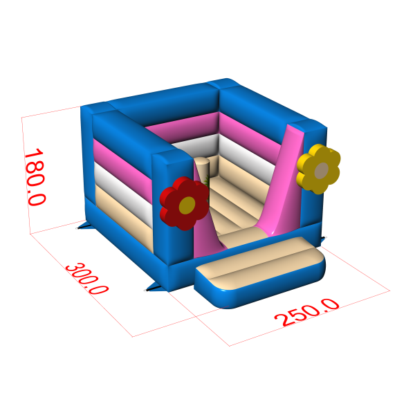 Το πολύχρωμο φουσκωτό κάστρο με θέμα τη Χαβάη είναι μια επιλογή για τους διοργανωτές που θέλουν να ενισχύσουν το χώρο των παιδιών με ένα ελκυστικό και ασφαλές σημείο παιχνιδιού. Το μοτίβο λουλουδιών και τα χαρούμενα χρώματα τραβούν τα βλέμματα και είναι κατάλληλα για υπαίθριες εκδηλώσεις, οικογενειακά πικνίκ ή animation σε ξενοδοχεία. Το χαμηλό ύψος της κατασκευής (180 cm) επιτρέπει επίσης τη χρήση της σε εσωτερικούς χώρους. Χάρη στην κλειστή μορφή του, το κάστρο αναπήδησης προωθεί την ελεύθερη αλλά ελεγχόμενη διασκέδαση, ενώ το συμπαγές μέγεθός του καθιστά εύκολη την εφοδιαστική. Εξασφαλίστε ένα σύγχρονο highlight που μπορείτε εύκολα να προσαρμόσετε σε διαφορετικά σενάρια εκδηλώσεων.