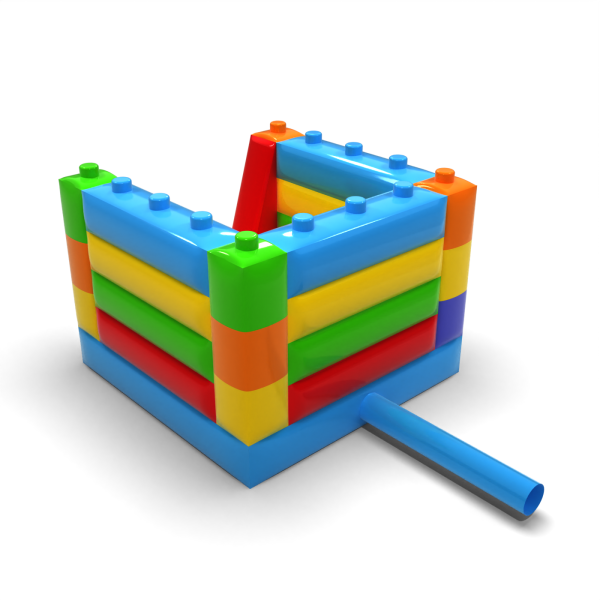 Ένα οπτικά ελκυστικό κάστρο αναπήδησης που μοιάζει με κατασκευή από μεγάλα, πολύχρωμα τουβλάκια. Η απλή του μορφή και το χαμηλό του ύψος (180 cm) επιτρέπουν την άνετη τοποθέτηση της ατραξιόν και σε εσωτερικούς χώρους. Θα λειτουργήσει καλά σε οικογενειακές εκδηλώσεις, σε εστιατόρια με χώρο παιχνιδιού ή σε χώρους ψυχαγωγίας ξενοδοχείων.
