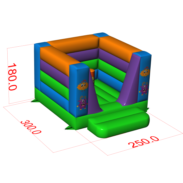 Το συμπαγές φουσκωτό κάστρο με τα παιχνιδιάρικα τέρατα είναι μια πρόταση που τραβάει αμέσως την προσοχή των παιδιών με τα χρώματα και τα χαρούμενα γραφικά του. Ο σχεδιασμός με την κλειστή πλευρά του δίνει την αίσθηση της ασφάλειας, ενώ το χαμηλό ύψος του επιτρέπει τη χρήση του σε εσωτερικούς χώρους. Πρόκειται για μια πρακτική λύση για ξενοδοχεία, εστιατόρια ή παιδότοπους που θέλουν να προσφέρουν ενεργή ψυχαγωγία στους μικρούς φίλους ανεξάρτητα από τις καιρικές συνθήκες.