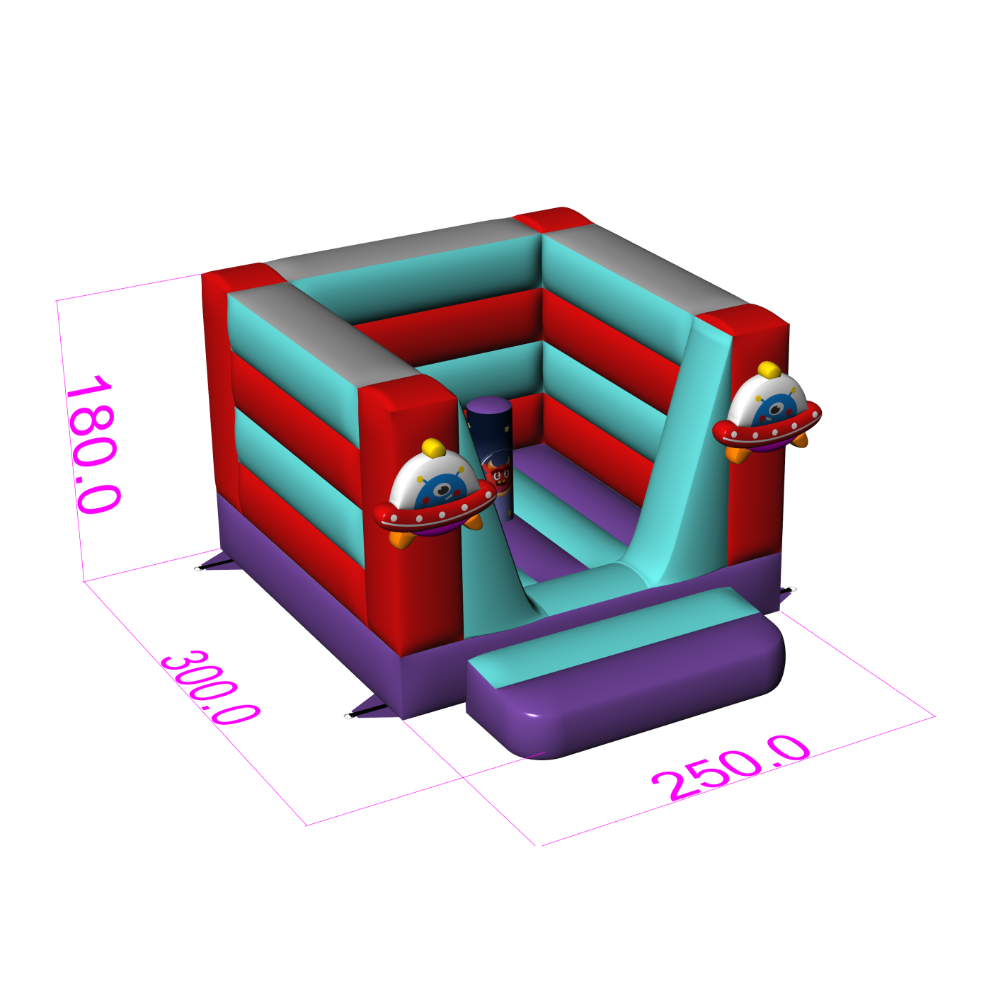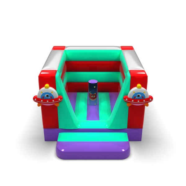 Το φουσκωτό κάστρο με θέμα το διάστημα είναι ένα συμπαγές αξιοθέατο που είναι ιδανικό για ξενοδοχεία, θέρετρα και οικογενειακές εκδηλώσεις. Ο πολύχρωμος σχεδιασμός και τα αξεσουάρ που σχετίζονται με τα UFO προσελκύουν την προσοχή των παιδιών και προσδίδουν στο χώρο έναν μοναδικό χαρακτήρα. Ο κλειστός σχεδιασμός παρέχει ένα ασφαλές περιβάλλον παιχνιδιού και το χαμηλό ύψος επιτρέπει επίσης τη χρήση σε εσωτερικούς χώρους. Εξασφαλίστε ένα σύγχρονο σημείο εστίασης που μπορείτε εύκολα να προσαρμόσετε σε διαφορετικά σενάρια εκδήλωσης.