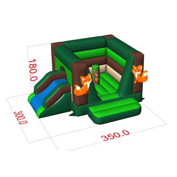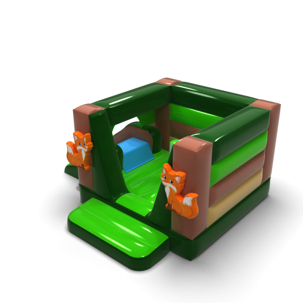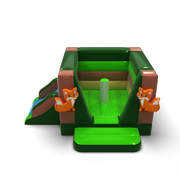 Αυτή η έκδοση του κάστρου αναπήδησης έχει εμπλουτιστεί με μια μικρή τσουλήθρα, η οποία επεκτείνει το χρόνο και την ελκυστικότητα του παιχνιδιού. Το πράσινο-καφέ χρώμα θυμίζει δάσος και το μοτίβο της αλεπούς δίνει στη δομή μια φιλική αίσθηση. Χάρη στις συμπαγείς διαστάσεις της, η μονάδα λειτουργεί καλά τόσο σε εξωτερικούς χώρους όσο και σε μικρότερα δωμάτια. Εξασφαλίστε ένα μοντέρνο σημείο εστίασης που μπορείτε εύκολα να προσαρμόσετε σε διαφορετικά σενάρια εκδηλώσεων.