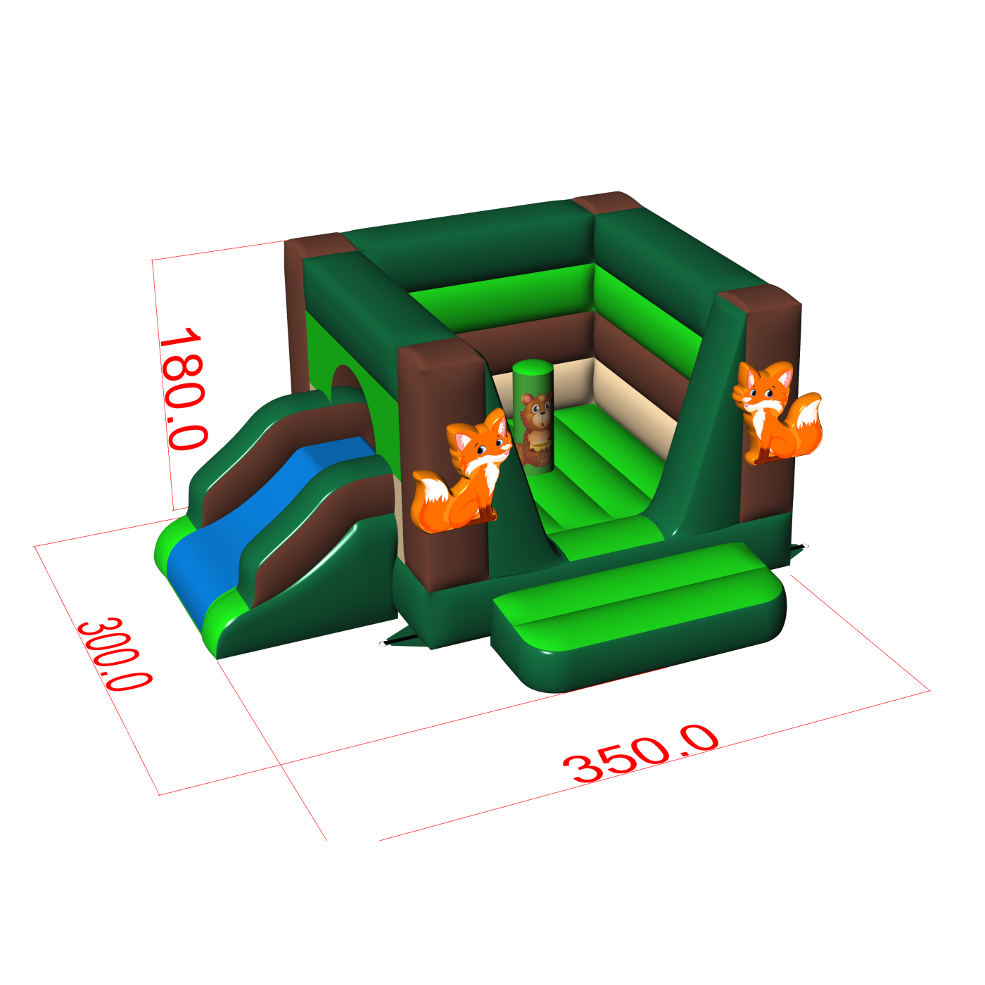 Το Μικρό φουσκωτό κάστρο με τσουλήθρα - με θέμα το δάσος είναι μια ατραξιόν για όλους τους λάτρεις του χαρούμενου άλματος. Τα παιδιά διασκεδάζουν υπέροχα – πηδούν και υποδύονται ρόλους που ταιριάζουν στο θέμα της ατραξιόν. Το Μικρό φουσκωτό κάστρο με τσουλήθρα - με θέμα το δάσος έχει σχεδιαστεί όχι μόνο για πολύ μικρά παιδιά. Τα φουσκωτά αυτής της κατηγορίας είναι συνήθως πλούσια διακοσμημένα και περιέχουν πολλά στοιχεία που προσκαλούν σε ξέγνοιαστο άλμα στον καθαρό αέρα. Τα φουσκωτά κάστρα μπορούν να δημιουργήσουν έναν φανταστικό κόσμο εμπειριών μέσα από χαρούμενα άλματα με φίλους και συνομηλίκους. Το φουσκωτό κάστρο μπορεί να συνδυαστεί με άλλα προϊόντα από την προσφορά μας, δημιουργώντας έτσι έναν μαγικό, παραμυθένιο κόσμο εμπειριών για ώρες διασκέδασης και χαράς.