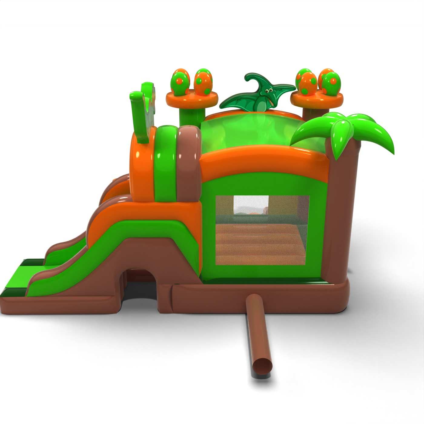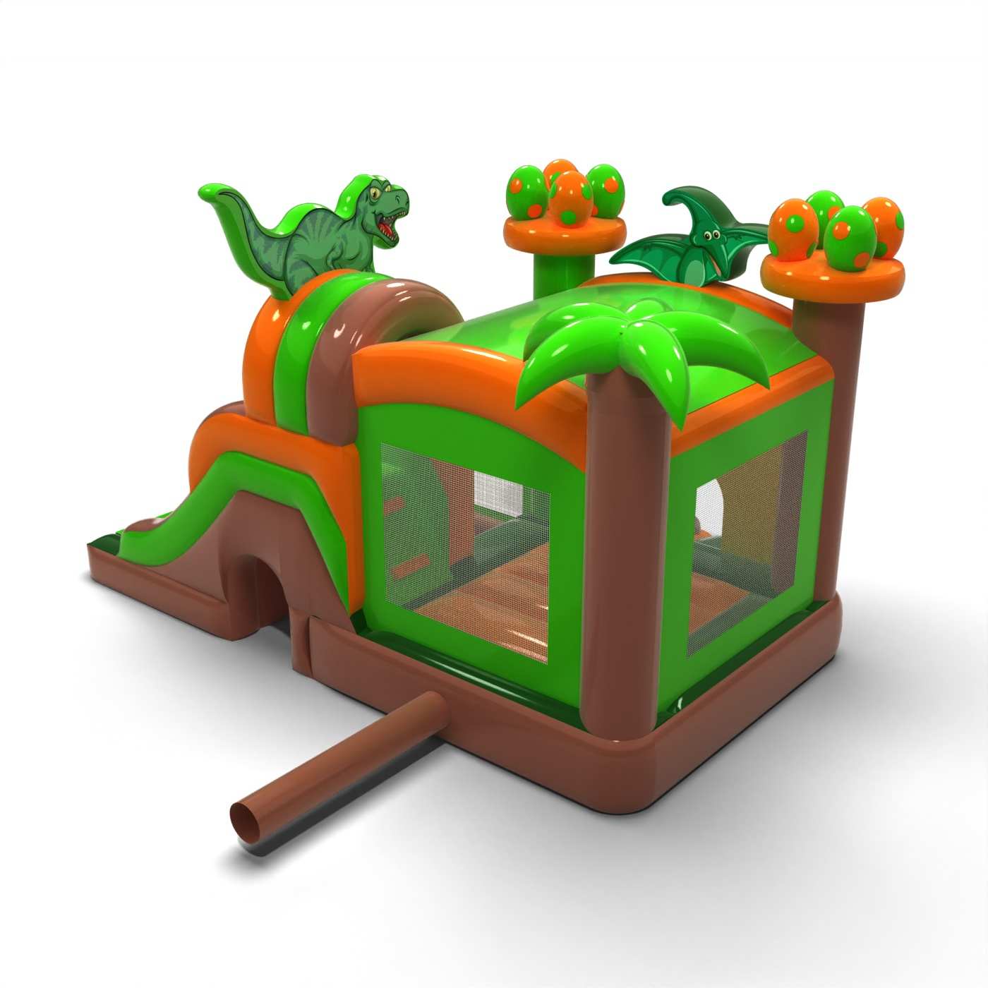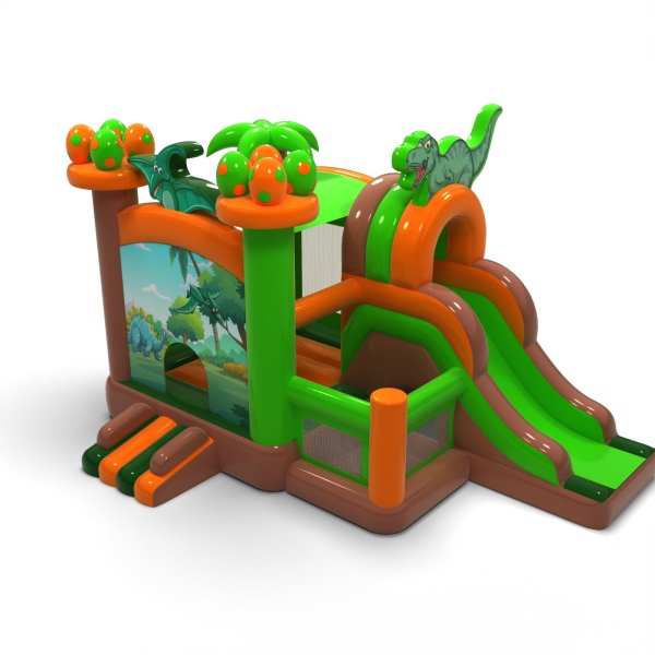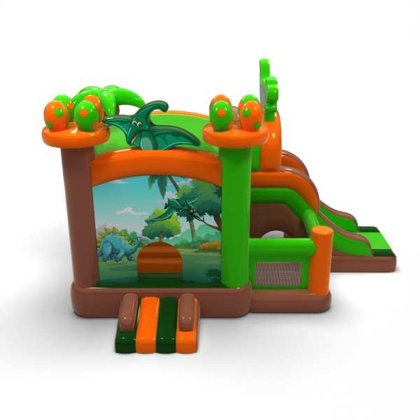 Το Combo φουσκωτό κάστρο με θέμα δεινοσαύρων είναι μια ατραξιόν για όλους τους λάτρεις του χαρούμενου άλματος. Τα παιδιά διασκεδάζουν υπέροχα – πηδούν και υποδύονται ρόλους που ταιριάζουν στο θέμα της ατραξιόν. Το Combo φουσκωτό κάστρο με θέμα δεινοσαύρων έχει σχεδιαστεί όχι μόνο για πολύ μικρά παιδιά. Τα φουσκωτά αυτής της κατηγορίας είναι συνήθως πλούσια διακοσμημένα και περιέχουν πολλά στοιχεία που προσκαλούν σε ξέγνοιαστο άλμα στον καθαρό αέρα. Τα φουσκωτά κάστρα μπορούν να δημιουργήσουν έναν φανταστικό κόσμο εμπειριών μέσα από χαρούμενα άλματα με φίλους και συνομηλίκους. Το φουσκωτό κάστρο μπορεί να συνδυαστεί με άλλα προϊόντα από την προσφορά μας, δημιουργώντας έτσι έναν μαγικό, παραμυθένιο κόσμο εμπειριών για ώρες διασκέδασης και χαράς.