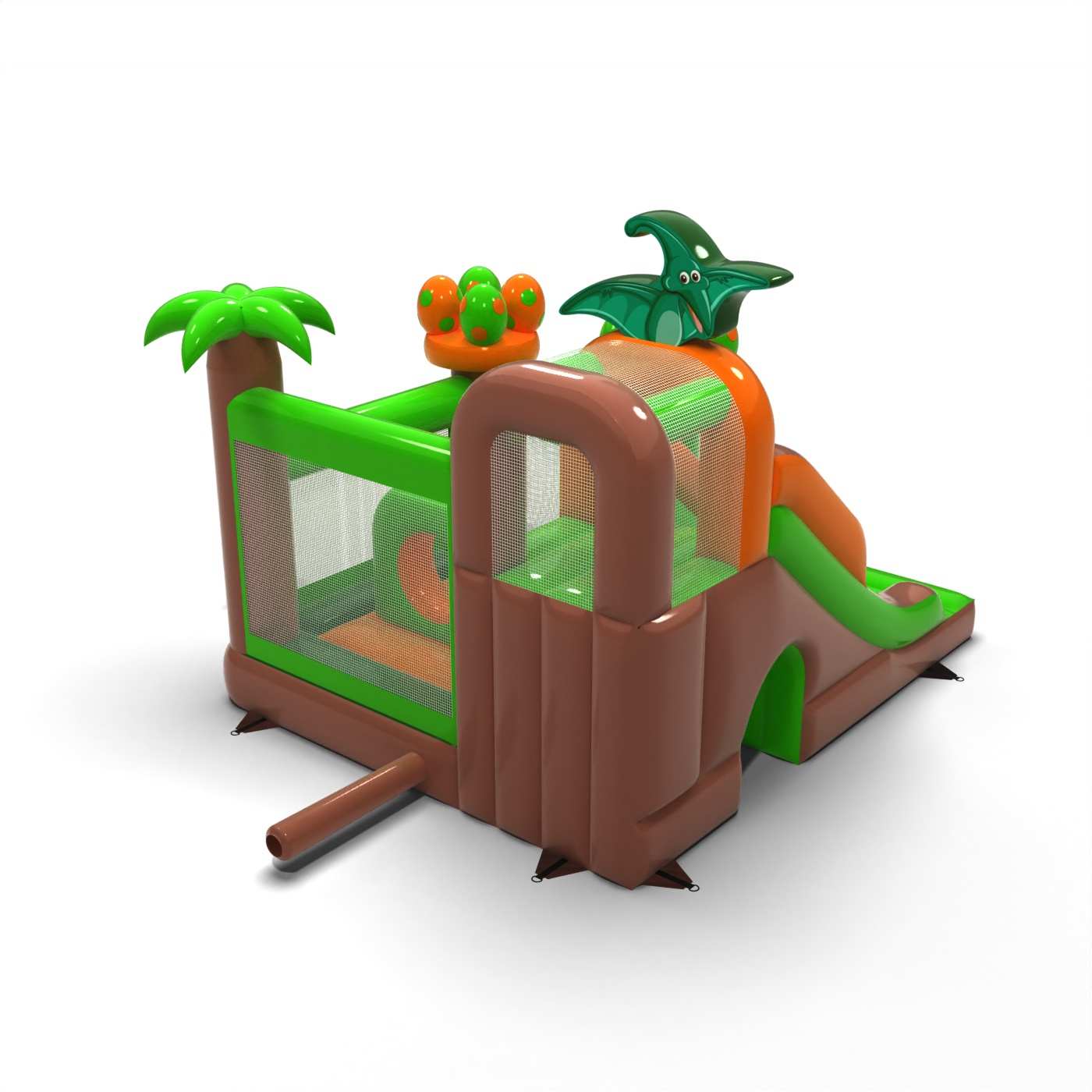 Ένα μικρό κάστρο με θέμα τους δεινόσαυρους είναι μια πρόταση που δημιουργήθηκε με γνώμονα τους μικρότερους συμμετέχοντες. Η απλή, ξεκάθαρη μορφή του επιτρέπει στα παιδιά να αρχίσουν γρήγορα να παίζουν χωρίς την ανάγκη κινούμενης εικόνας. Τα γραφικά των δεινοσαύρων προσθέτουν χαρακτήρα και φιλική ενέργεια στην ατραξιόν. Είναι μια καλή επιλογή για εταιρείες ενοικίασης που αναζητούν ένα ελαφρύ, κινητό φουσκωτό για μικρές παραγωγές. Το μοντέλο είναι ιδανικό για παιδικούς χώρους, οικογενειακά πικνίκ και οικείες υπαίθριες εκδηλώσεις.