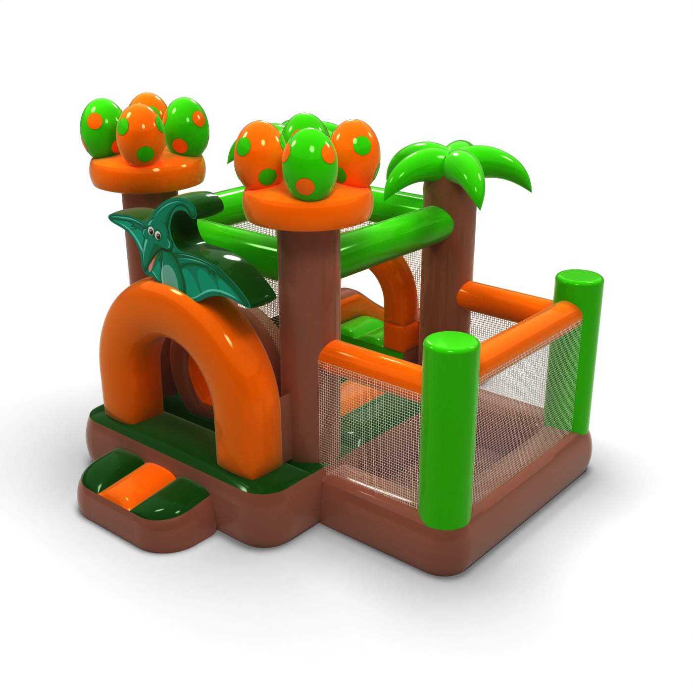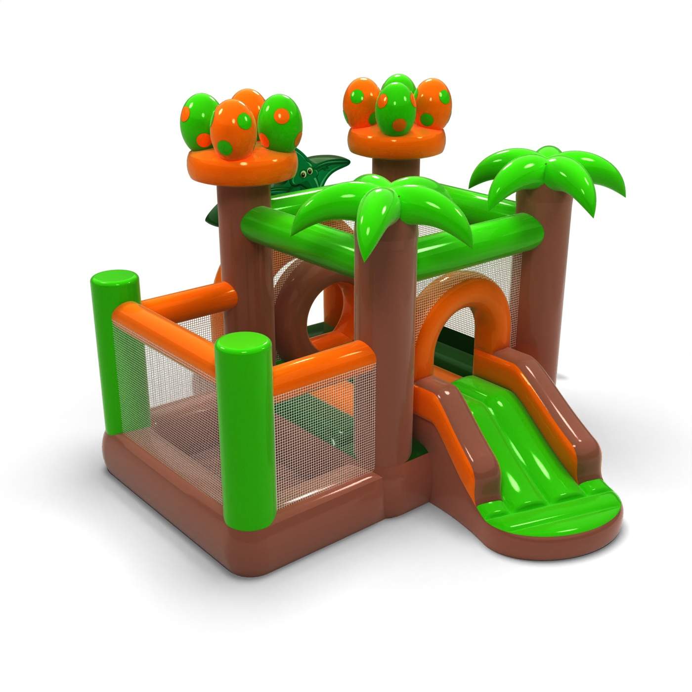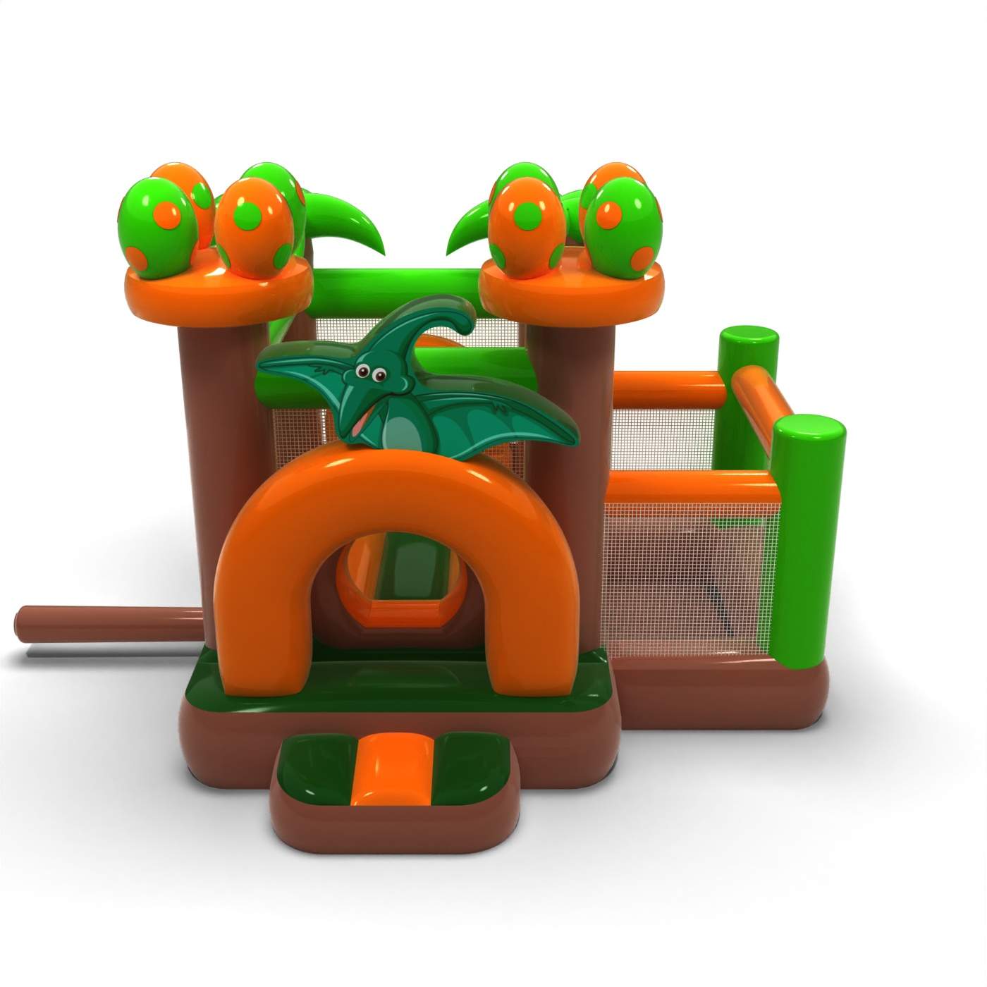 Αυτό το μικρό φουσκωτό με θέμα τους δεινόσαυρους έχει σχεδιαστεί για ασφαλές παιχνίδι για τα μικρότερα παιδιά. Η στεγνή πισίνα σε συνδυασμό με τη ζώνη άλματος δίνει στα νήπια ελευθερία κινήσεων και μια αίσθηση άνεσης. Η φιλική μορφή και το χαμηλό ύψος διευκολύνουν τους διασκεδαστές και τους φροντιστές να ελέγχουν το παιχνίδι. Πρόκειται για μια πρακτική προσθήκη στην προσφορά εκδηλώσεων που απευθύνεται σε οικογένειες με μικρά παιδιά. Η ατραξιόν είναι ιδανική για πικνίκ, εκδηλώσεις προσχολικής ηλικίας και οικεία οικογενειακά πάρτι.