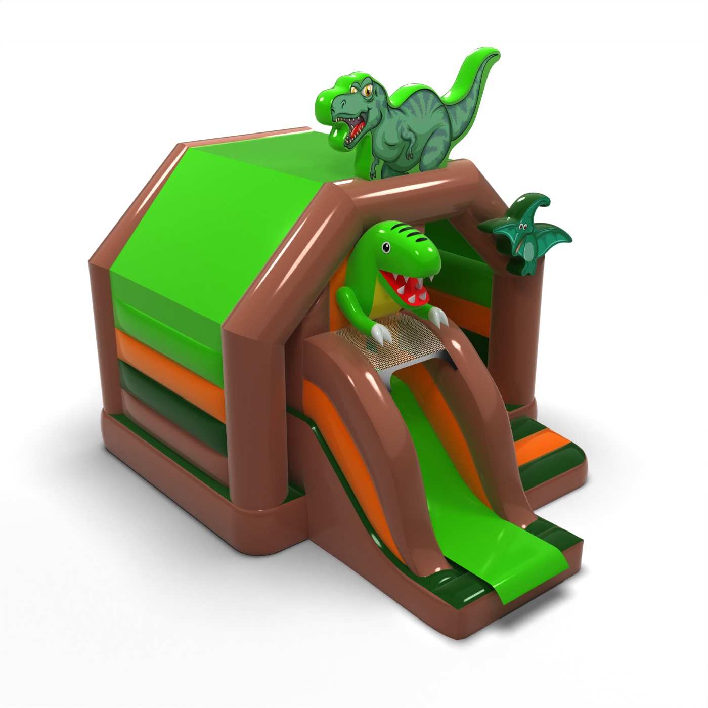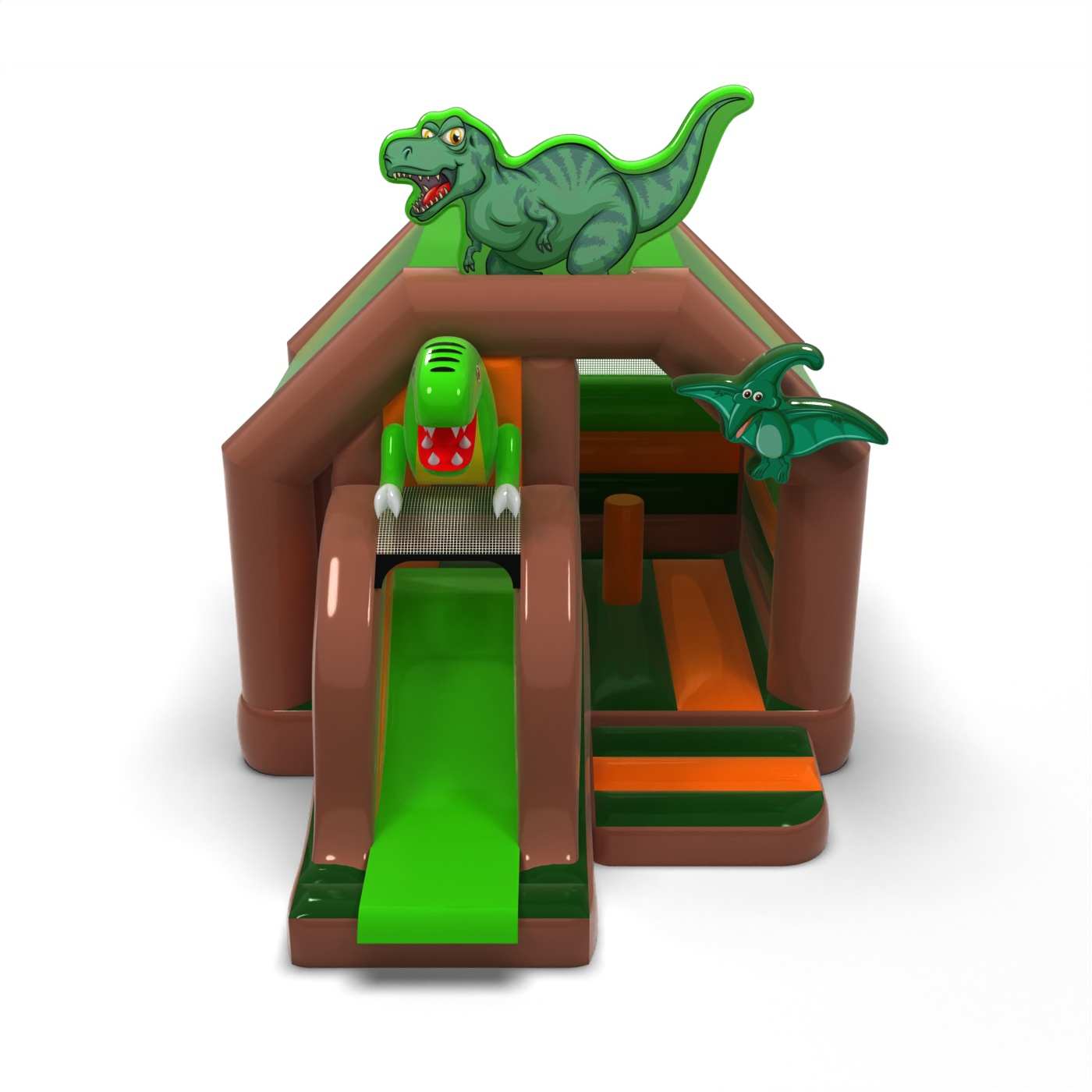 Η περίτεχνη μορφή και η ιουρασική ατμόσφαιρα δημιουργούν μια συνεκτική, θεματική ζώνη παιχνιδιού εμπνευσμένη από τον κόσμο των δεινοσαύρων. Ο συνδυασμός άλματος και ολίσθησης επιτρέπει στα παιδιά να εξερευνήσουν ενεργά την ατραξιόν και τα κρατάει απασχολημένα για μεγαλύτερο χρονικό διάστημα. Τα περίτεχνα οπτικά στοιχεία ενισχύουν την ατμόσφαιρα της περιπέτειας και υποστηρίζουν τέλεια τα θεματικά κινούμενα σχέδια. Απευθύνεται στους διοργανωτές που θέλουν να κάνουν την παιδική τους ζώνη να ξεχωρίσει με μια πιο περίτεχνη ατραξιόν. Το μοντέλο είναι κατάλληλο για φεστιβάλ, ημέρες πόλης και μεγαλύτερες οικογενειακές εκδηλώσεις.