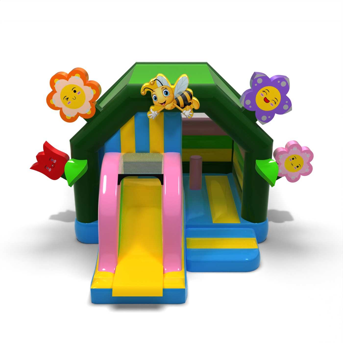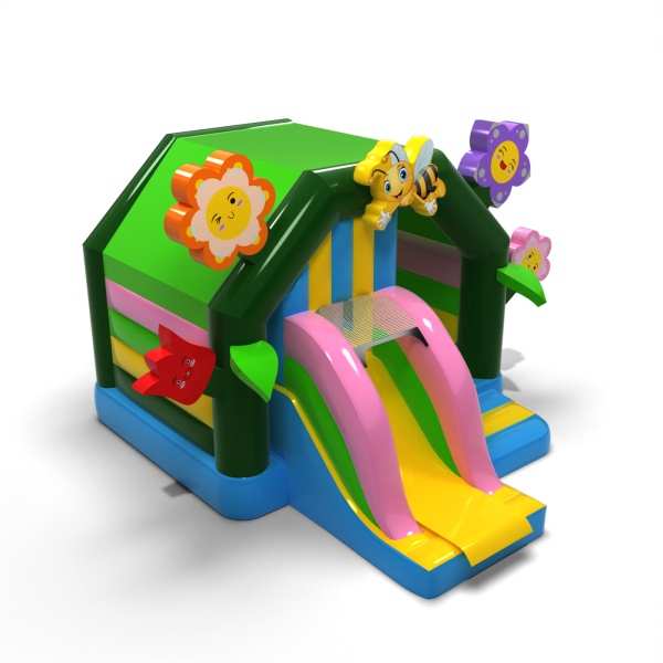 Η εκτεταμένη μορφή σε ένα ανοιξιάτικο σχέδιο δημιουργεί μια χαρούμενη ζώνη παιχνιδιού εμπνευσμένη από τη φύση που ξυπνάει στη ζωή. Ο συνδυασμός χώρου για άλματα και τσουλήθρες ενθαρρύνει τα παιδιά να κινηθούν και να παραμείνουν περισσότερο στην ατραξιόν. Τα φωτεινά, φρέσκα οπτικά στοιχεία ενισχύουν τα θετικά συναισθήματα και προσελκύουν την προσοχή σε υπαίθριες εκδηλώσεις. Είναι μια πρόταση για τους διοργανωτές που θέλουν να ξεχωρίσουν την παιδική ζώνη με ένα ελκυστικό αλλά οπτικά ήπιο σχέδιο. Η ατραξιόν είναι ιδανική για ανοιξιάτικα φεστιβάλ, οικογενειακά πικνίκ και εποχιακές υπαίθριες εκδηλώσεις.