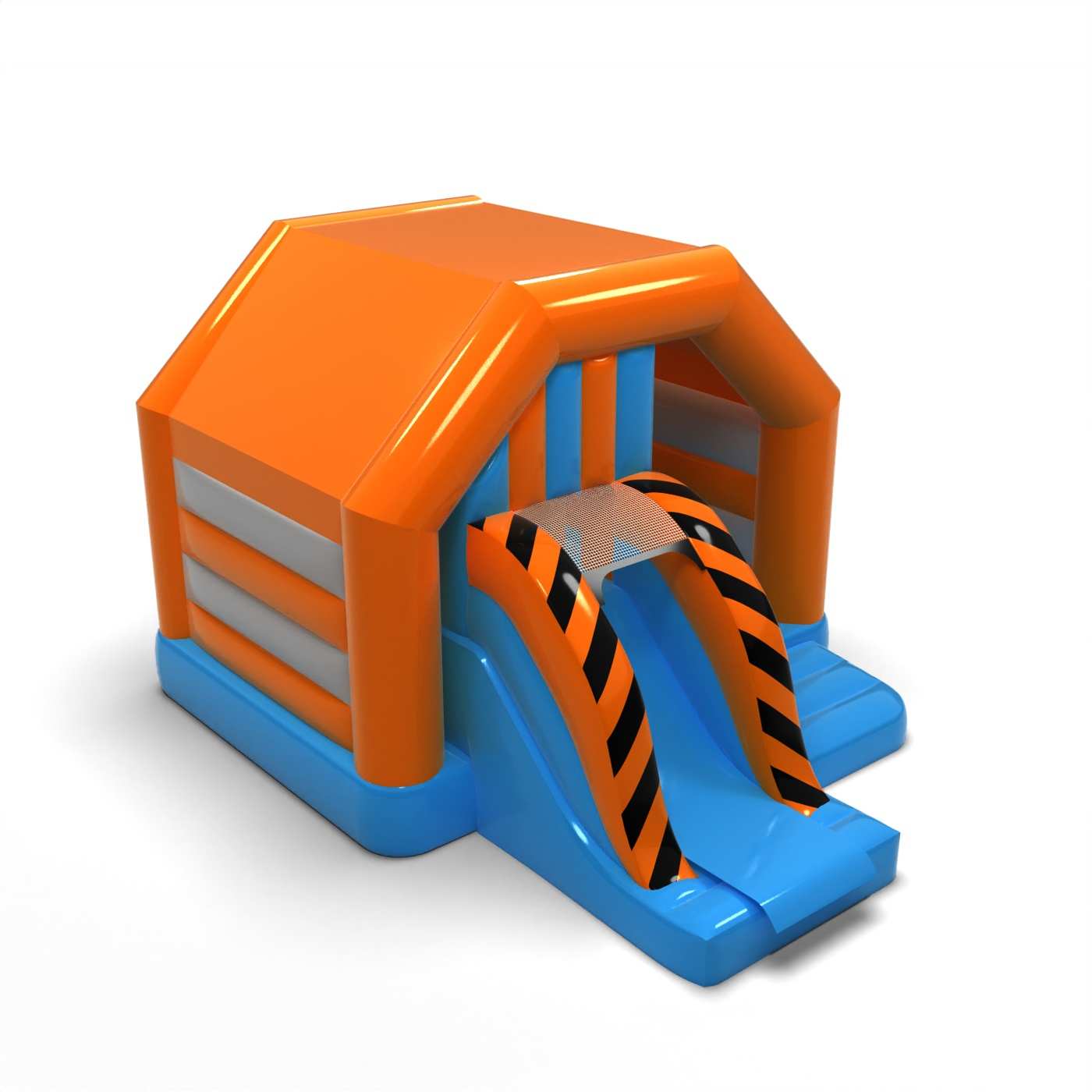 Η κλασική μορφή του σπιτιού δημιουργεί έναν φιλικό αλλά ουδέτερο χώρο παιχνιδιού για τα παιδιά. Ο συνδυασμός άλματος και τσουλήθρας παρέχει μια ομαλή και δυναμική δραστηριότητα καθ' όλη τη διάρκεια της εκδήλωσης. Η συγκρατημένη αισθητική επιτρέπει στην ατραξιόν να ταιριάζει εύκολα σε μια ποικιλία ρυθμίσεων εκδήλωσης. Είναι το μοντέλο επιλογής όταν η ευελιξία και ο ήρεμος οπτικός χαρακτήρας είναι σημαντικά. Η ατραξιόν είναι κατάλληλη για φεστιβάλ, οικογενειακά πικνίκ και εταιρικές εκδηλώσεις με παιδιά.