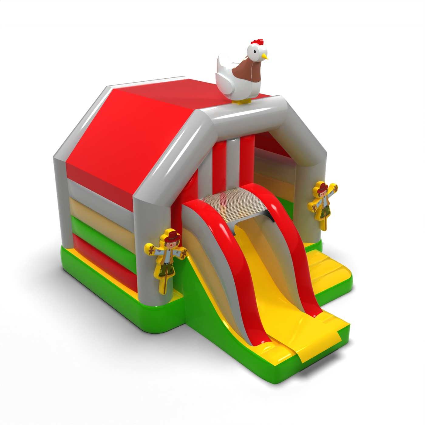 Το Αγρόκτημα - φουσκωτό με τσουλήθρα είναι μια ατραξιόν για όλους τους λάτρεις του χαρούμενου άλματος. Τα παιδιά διασκεδάζουν υπέροχα – πηδούν και υποδύονται ρόλους που ταιριάζουν στο θέμα της ατραξιόν. Το Αγρόκτημα - φουσκωτό με τσουλήθρα έχει σχεδιαστεί όχι μόνο για πολύ μικρά παιδιά. Τα φουσκωτά αυτής της κατηγορίας είναι συνήθως πλούσια διακοσμημένα και περιέχουν πολλά στοιχεία που προσκαλούν σε ξέγνοιαστο άλμα στον καθαρό αέρα. Τα φουσκωτά κάστρα μπορούν να δημιουργήσουν έναν φανταστικό κόσμο εμπειριών μέσα από χαρούμενα άλματα με φίλους και συνομηλίκους. Το φουσκωτό κάστρο μπορεί να συνδυαστεί με άλλα προϊόντα από την προσφορά μας, δημιουργώντας έτσι έναν μαγικό, παραμυθένιο κόσμο εμπειριών για ώρες διασκέδασης και χαράς.