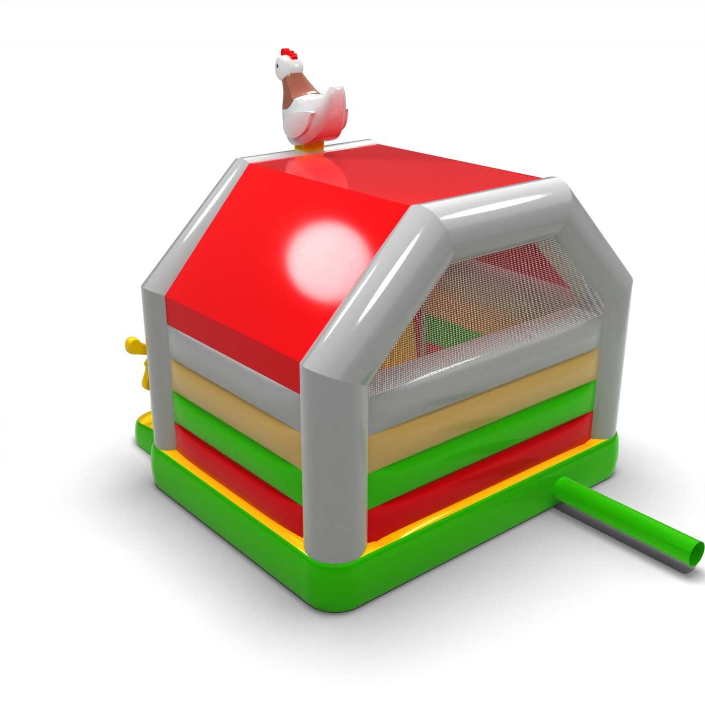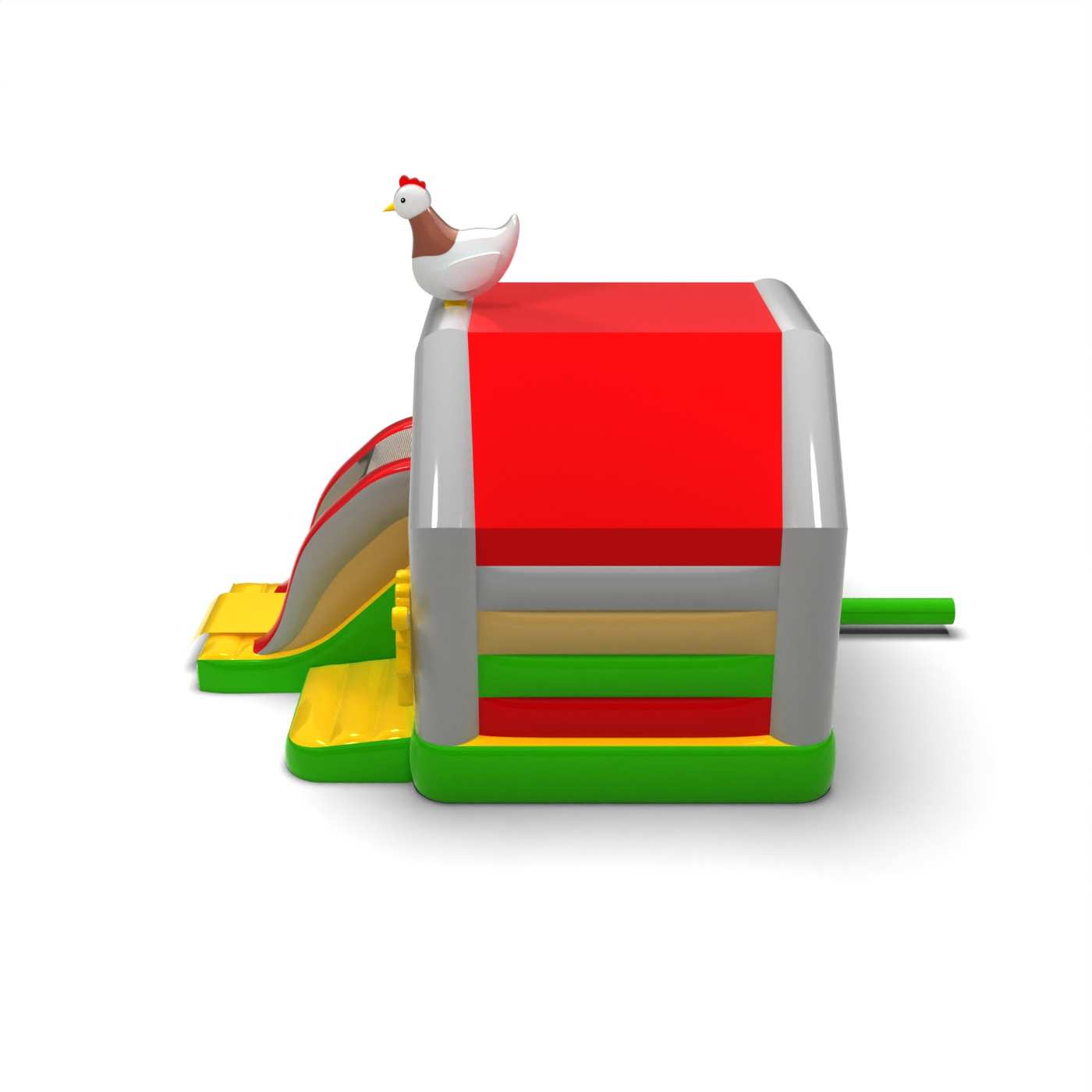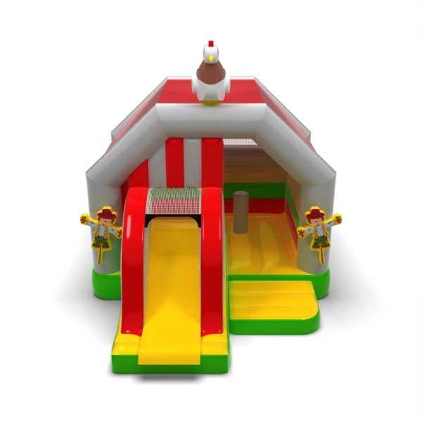 Η μορφή αγροικίας δημιουργεί έναν ξεχωριστό θεματικό χώρο παιχνιδιού εμπνευσμένο από τη ζωή στην εξοχή. Ο συνδυασμός χώρου για άλματα και ολίσθηση ενθαρρύνει τα παιδιά να κινούνται και να απολαμβάνουν τα αξιοθέατα για περισσότερο χρόνο. Ο φυσικός, ζεστός οπτικός χαρακτήρας δημιουργεί θετικά συναισθήματα και ενθαρρύνει τη χαλαρή οικογενειακή διασκέδαση. Πρόκειται για μια πρόταση για τους διοργανωτές που θέλουν να εμπλουτίσουν μια εκδήλωση με ένα ελκυστικό και σαφές αγροτικό θέμα. Η ατραξιόν θα βρει καλά το δρόμο της σε φεστιβάλ, οικογενειακά πικνίκ και υπαίθριες εκδηλώσεις για παιδιά.