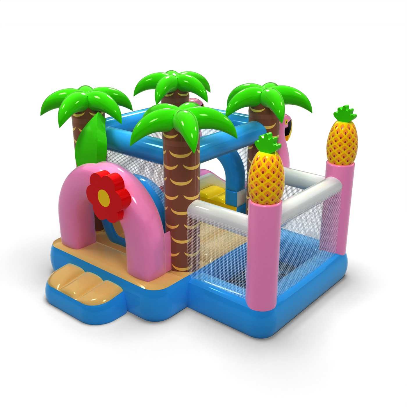 Ο τροπικός σχεδιασμός εμπνευσμένος από τις διακοπές δημιουργεί έναν χαρούμενο και φιλικό χώρο παιχνιδιού για τα μικρότερα παιδιά. Ο συνδυασμός μιας ζώνης αναπήδησης και μιας στεγνής πισίνας επιτρέπει στα μικρά παιδιά να κινούνται ελεύθερα και να απολαμβάνουν με ασφάλεια τα αξιοθέατα. Τα καλοκαιρινά εικαστικά δημιουργούν θετικά συναισθήματα και ταιριάζουν καλά με τον υπαίθριο χαρακτήρα των εκδηλώσεων. Η συμπαγής μορφή καθιστά το φουσκωτό εύκολο να οργανωθεί ακόμη και σε έναν μικρότερο χώρο εμψύχωσης. Η ατραξιόν είναι ιδανική για οικογενειακά πικνίκ, φεστιβάλ και υπαίθριες καλοκαιρινές εκδηλώσεις.