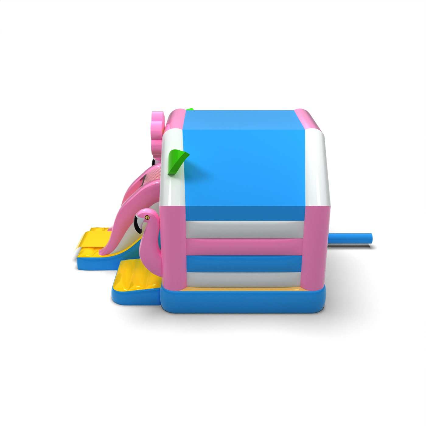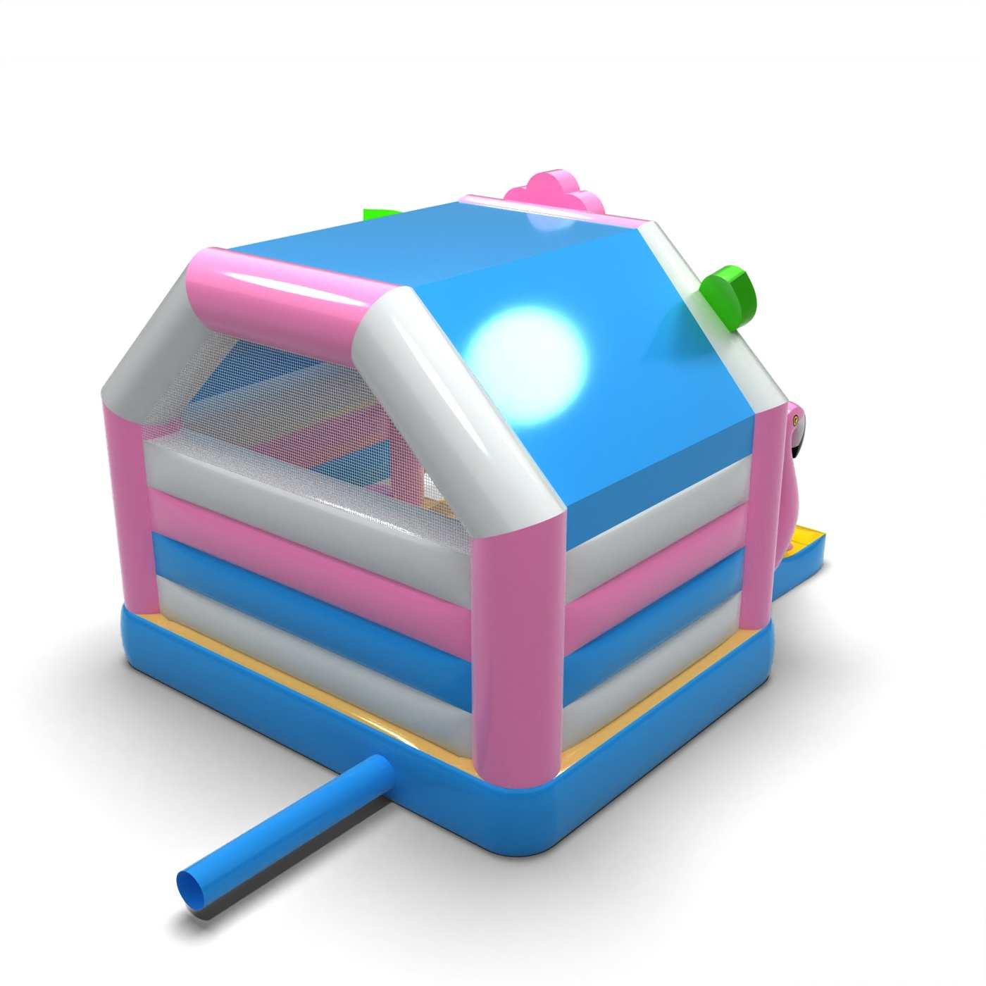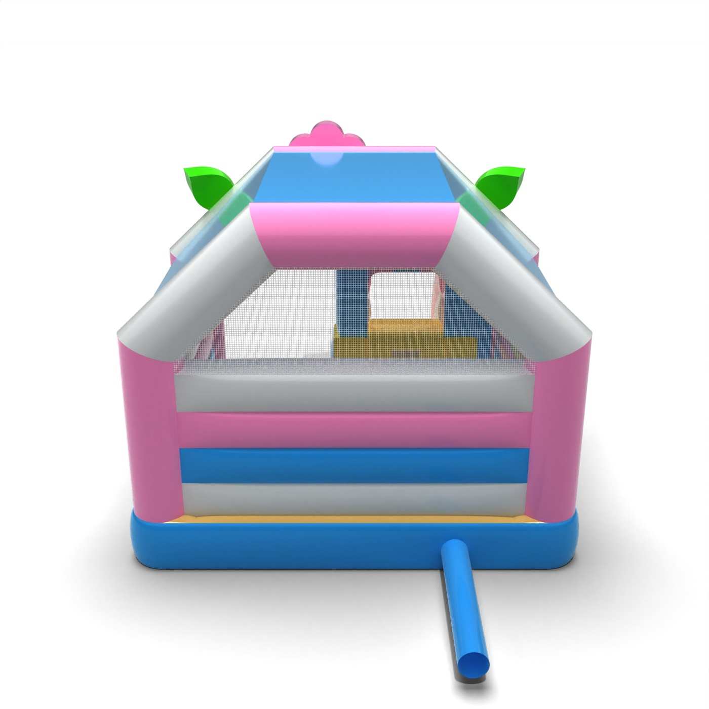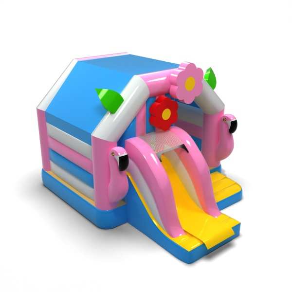 Η μορφή του σπιτιού σε τροπικό σχέδιο δημιουργεί έναν εκφραστικό χώρο παιχνιδιού διακοπών εμπνευσμένο από την παραλία και τα εξωτικά νησιά. Ο συνδυασμός του χώρου για άλματα και ολίσθηση ενθαρρύνει τα παιδιά να κινούνται και να απολαμβάνουν τα αξιοθέατα για μεγαλύτερο χρονικό διάστημα. Τα καλοκαιρινά, πολύχρωμα εικαστικά στοιχεία ενισχύουν τον χαρούμενο χαρακτήρα της εκδήλωσης και προσελκύουν την προσοχή των συμμετεχόντων. Αυτή είναι μια πρόταση για τους διοργανωτές που θέλουν να προσδώσουν μια ξεχωριστή ατμόσφαιρα διακοπών στον παιδικό χώρο. Η ατραξιόν είναι ιδανική για καλοκαιρινά φεστιβάλ, οικογενειακά πικνίκ και υπαίθριες εκδηλώσεις σε στυλ διακοπών.
