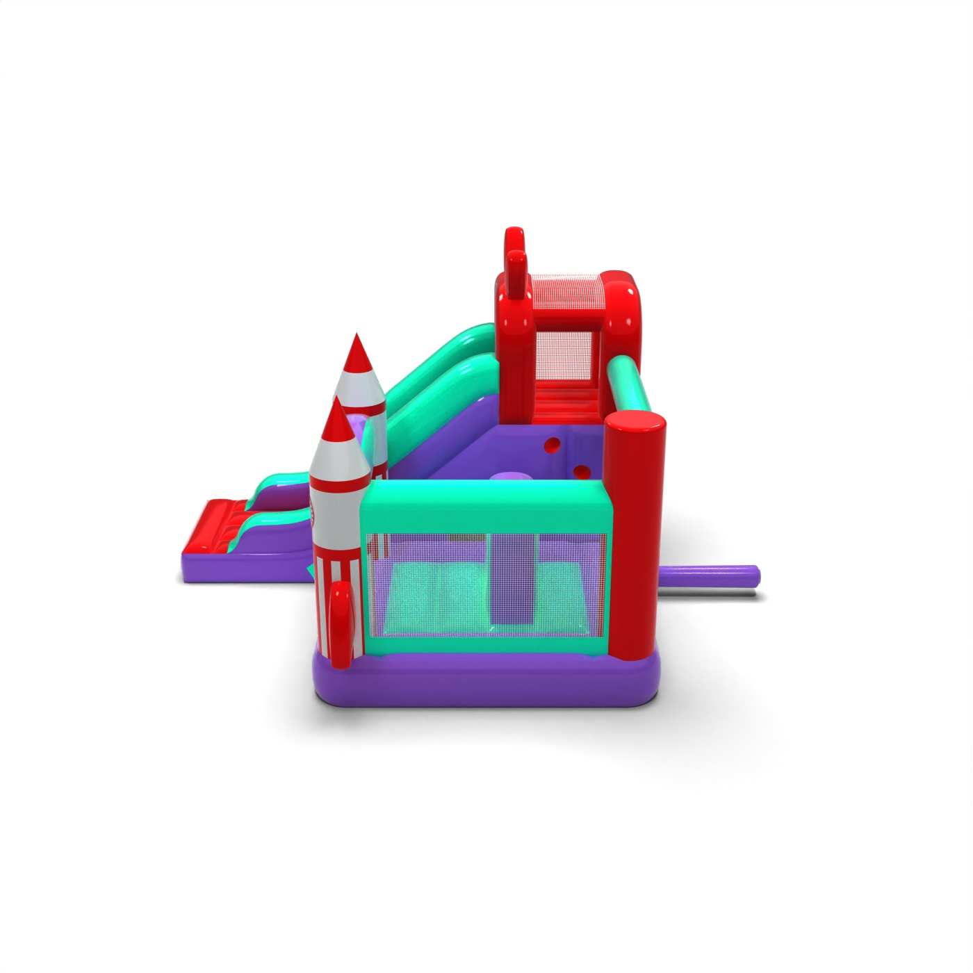 Η κοσμική ατμόσφαιρα προσδίδει σε αυτό το αξιοθέατο μια σύγχρονη και περιπετειώδη αίσθηση που μαγνητίζει γρήγορα την προσοχή των παιδιών. Ο συνδυασμός άλματος με τσουλήθρα επιτρέπει ποικίλο παιχνίδι και διατηρεί το ενδιαφέρον για μεγαλύτερο χρονικό διάστημα. Τα εμπνευσμένα από το διάστημα μοτίβα δημιουργούν την εντύπωση μιας διαπλανητικής αποστολής σε μια ανάλαφρη, παιδική μορφή. Πρόκειται για μια ευέλικτη επιλογή για εταιρείες ενοικίασης που καλύπτουν οικογενειακές και θεματικές εκδηλώσεις. Το φουσκωτό είναι ιδανικό για πικνίκ, φεστιβάλ και εμψυχωτικές εκδηλώσεις εμπνευσμένες από τον κόσμο της επιστημονικής φαντασίας.