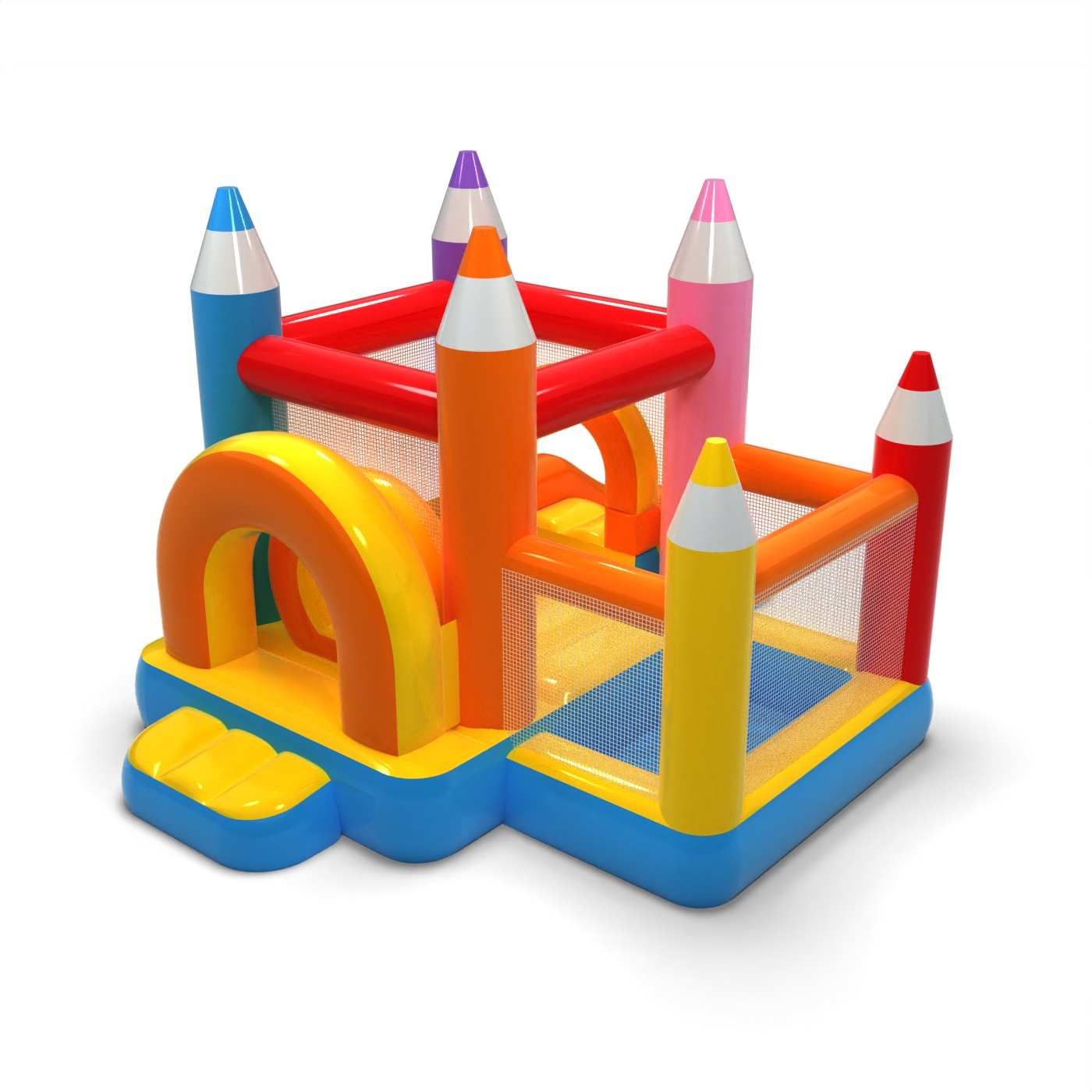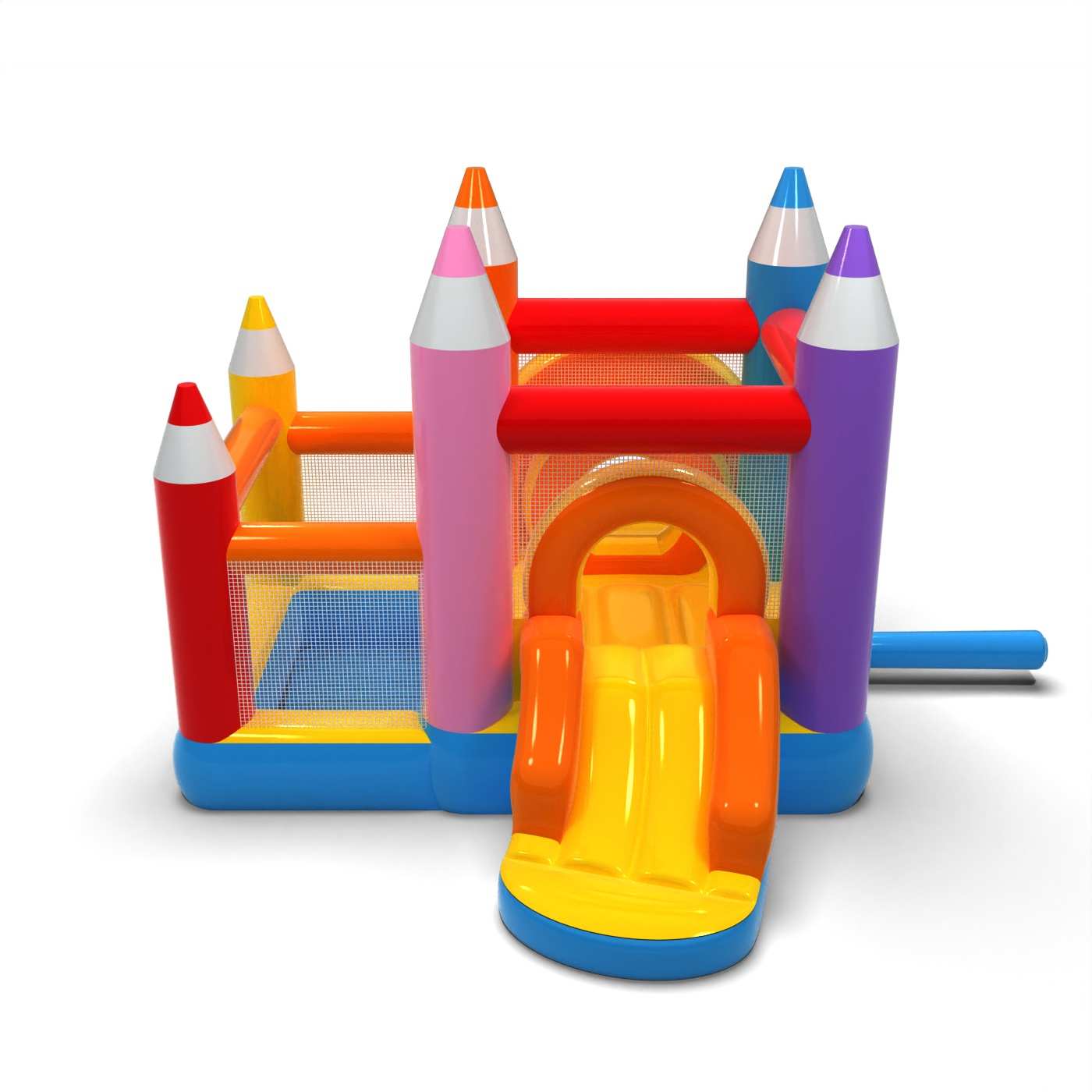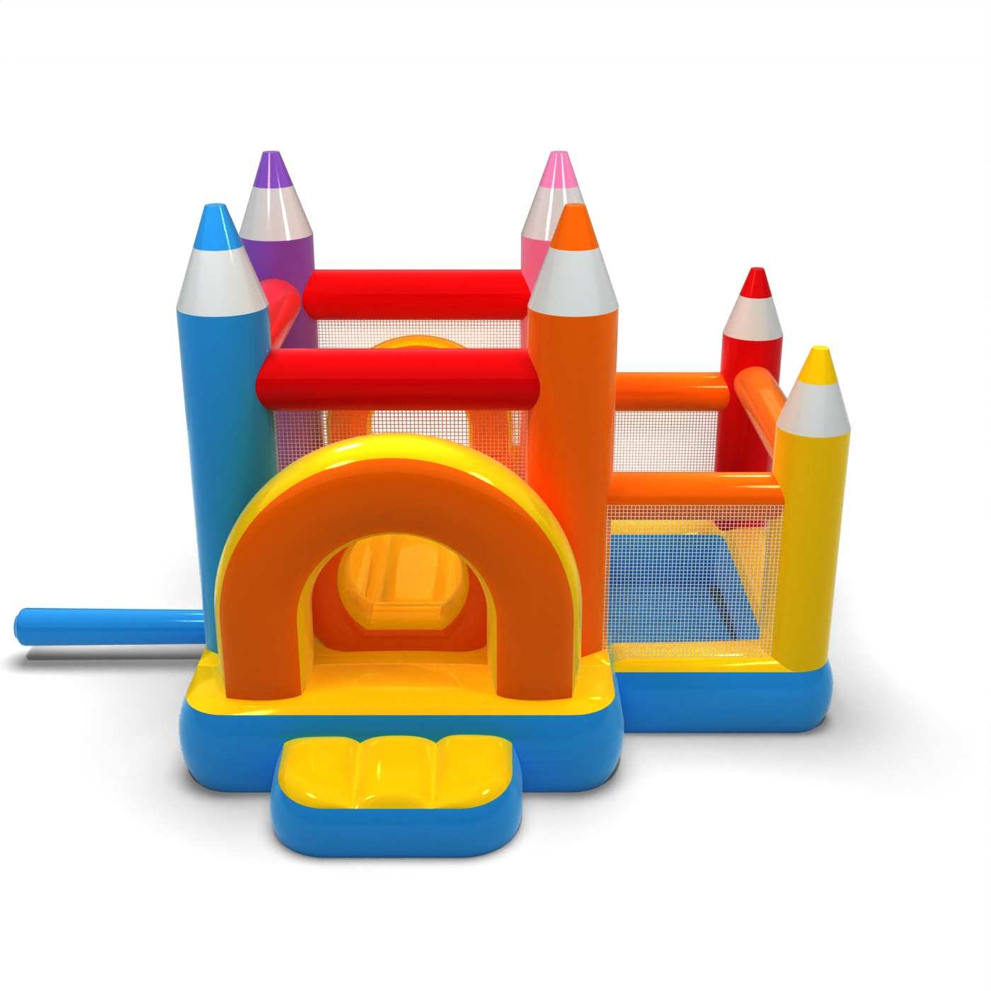Ο παστέλ σχεδιασμός και οι λεπτομέρειες από κραγιόνια δημιουργούν έναν ήπιο, φιλικό χώρο παιχνιδιού για τα μικρότερα παιδιά. Ο συνδυασμός ενός χώρου για άλματα και μιας στεγνής πισίνας επιτρέπει στα νήπια να κινούνται ελεύθερα και να εξερευνούν την ατραξιόν με ασφάλεια. Η εμπνευσμένη από τα κραγιόνια μορφή διεγείρει τη φαντασία των παιδιών και ενθαρρύνει το δημιουργικό παιχνίδι. Το συμπαγές μέγεθος καθιστά εύκολη την οργάνωση του παιδικού χώρου ακόμη και σε μικρό χώρο. Η ατραξιόν είναι ιδανική για οικογενειακά πικνίκ, κινούμενα σχέδια και εκδηλώσεις που απευθύνονται στους μικρότερους.