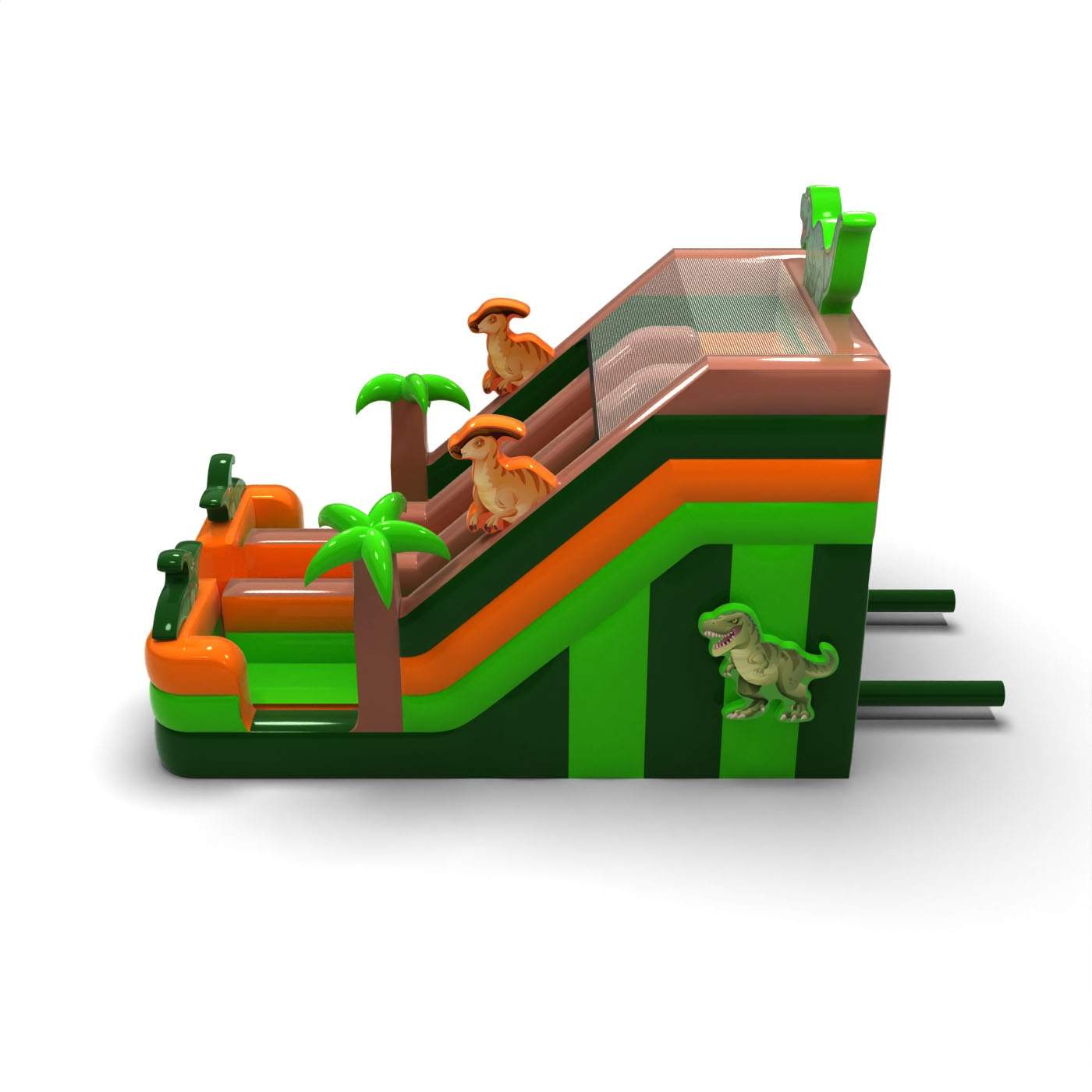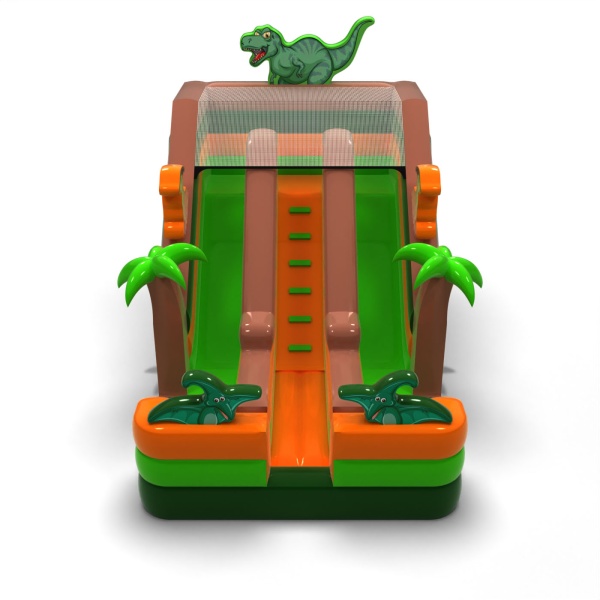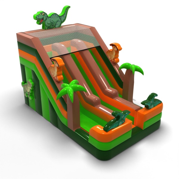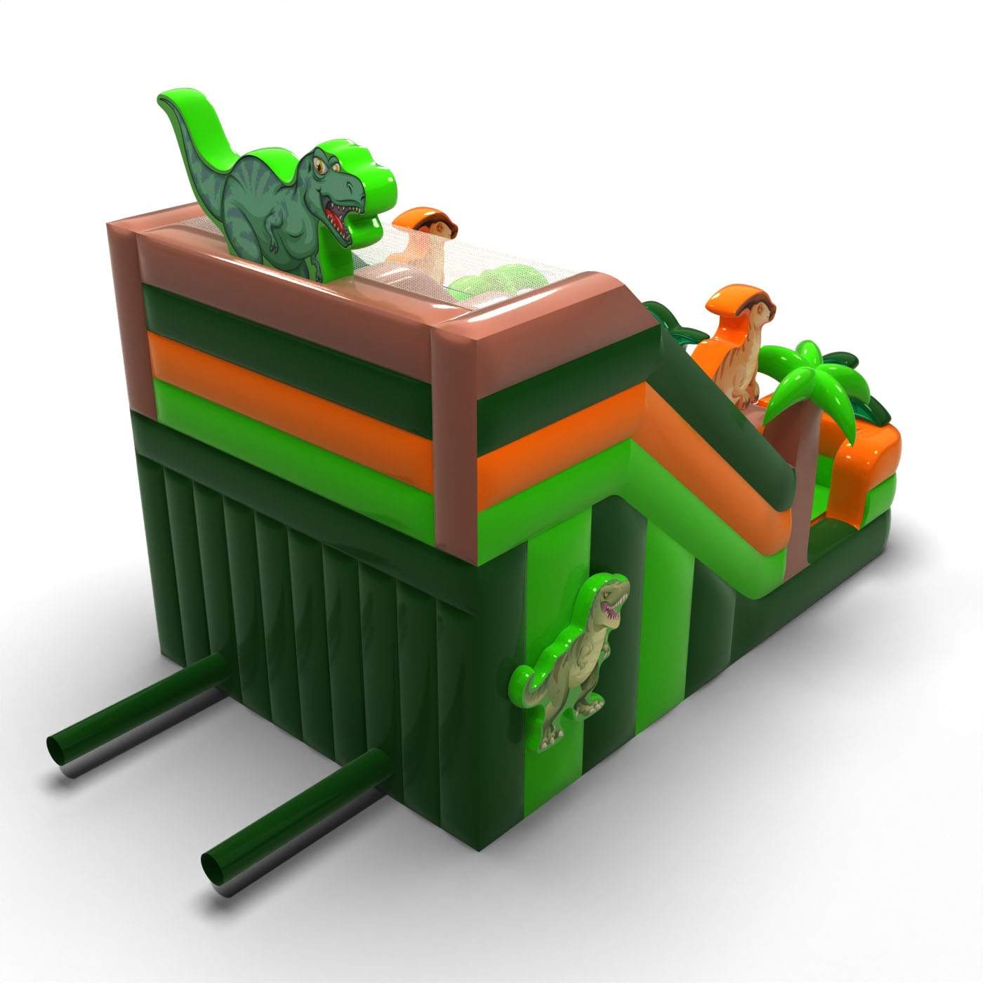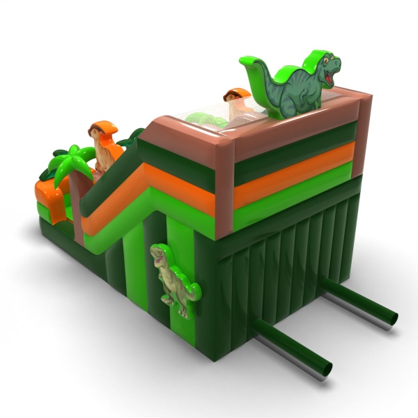 Η συμπαγής τσουλήθρα σε σχέδιο δεινοσαύρου συνδυάζει ένα ξεχωριστό οπτικό αποτέλεσμα με μια μορφή κατάλληλη για μικρότερους χώρους εκδηλώσεων. Δύο παράλληλες διαδρομές τσουλήθρας επιτρέπουν στα παιδιά να παίζουν ταυτόχρονα, αυξάνοντας τη ρευστότητα του παιχνιδιού και μειώνοντας τους χρόνους αναμονής. Η Jurassic ατμόσφαιρα δημιουργεί μια αίσθηση περιπέτειας και εξασφαλίζει ότι η ατραξιόν θα τραβήξει γρήγορα την προσοχή των μικρότερων συμμετεχόντων. Το μικρότερο μέγεθος καθιστά αυτό το μοντέλο μια πρακτική επιλογή για εταιρείες ενοικίασης που εξυπηρετούν μικρότερες παραγωγές και οικείες εκδηλώσεις. Η ατραξιόν είναι ιδανική για τοπικά φεστιβάλ, οικογενειακά πικνίκ και υπαίθρια animation, όπου η κινητικότητα, ο δυναμισμός και ένα αναγνωρίσιμο θέμα είναι σημαντικά.