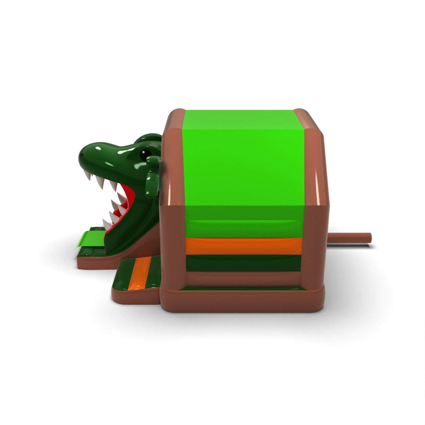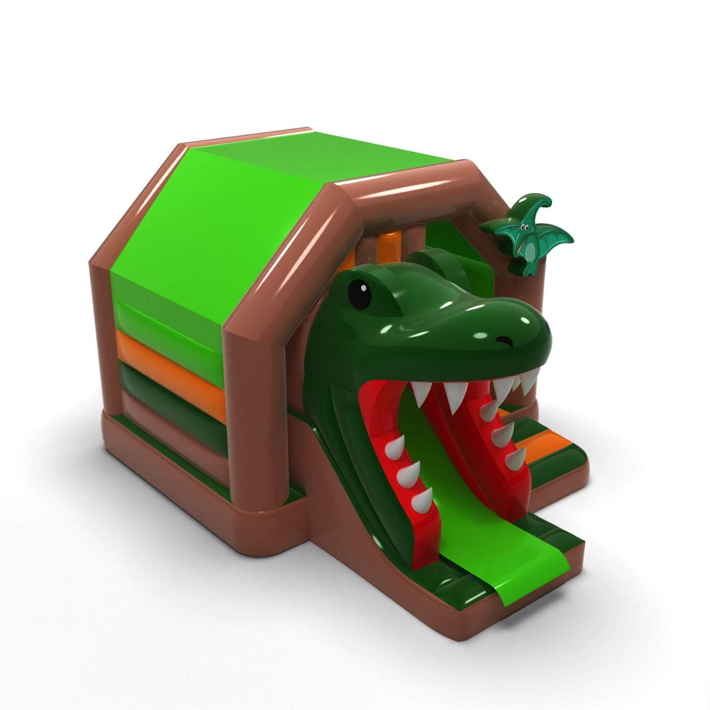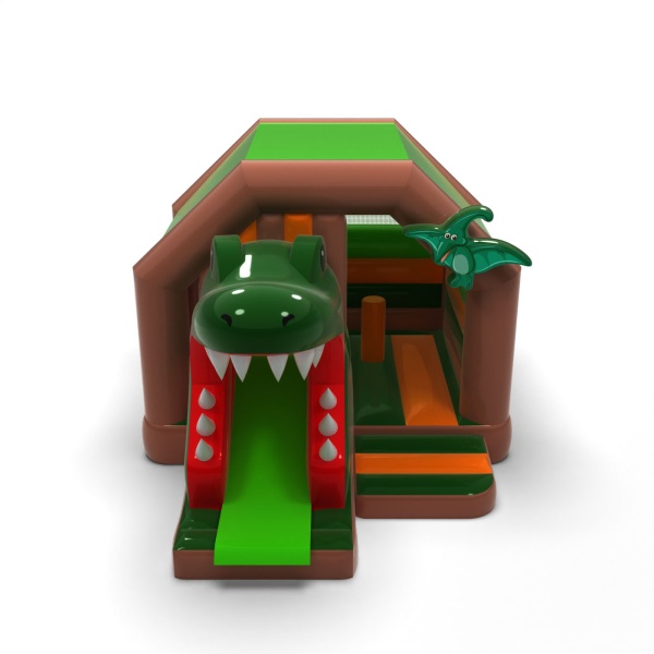 Η μορφή του ανοιχτού στομίου του δεινόσαυρου δημιουργεί ένα ισχυρό, περιπετειώδες οπτικό αποτέλεσμα που τραβάει αμέσως την προσοχή των συμμετεχόντων στην εκδήλωση. Η τσουλήθρα που οδηγείται μέσα από το στόμα ενισχύει τον ενθουσιασμό του παιχνιδιού και δίνει στα παιδιά την αίσθηση ότι συμμετέχουν σε μια περιπέτεια του Ιουρασικού. Ο χαρακτηριστικός, τρισδιάστατος σχεδιασμός διαφοροποιεί την ατραξιόν από τις κλασικές τσουλήθρες και ενισχύει την αναγνωρισιμότητά της. Πρόκειται για ένα ασυνήθιστο προϊόν για τις εταιρείες ενοικίασης που αναζητούν κάτι που θα διαφοροποιήσει ρεαλιστικά την προσφορά τους από τα συνήθη φουσκωτά. Η ατραξιόν είναι ιδανική για φεστιβάλ, θεματικές εκδηλώσεις και μεγάλες υπαίθριες εκδηλώσεις, όπου η θεαματικότητα και ο έντονος οπτικός αντίκτυπος είναι το κλειδί.