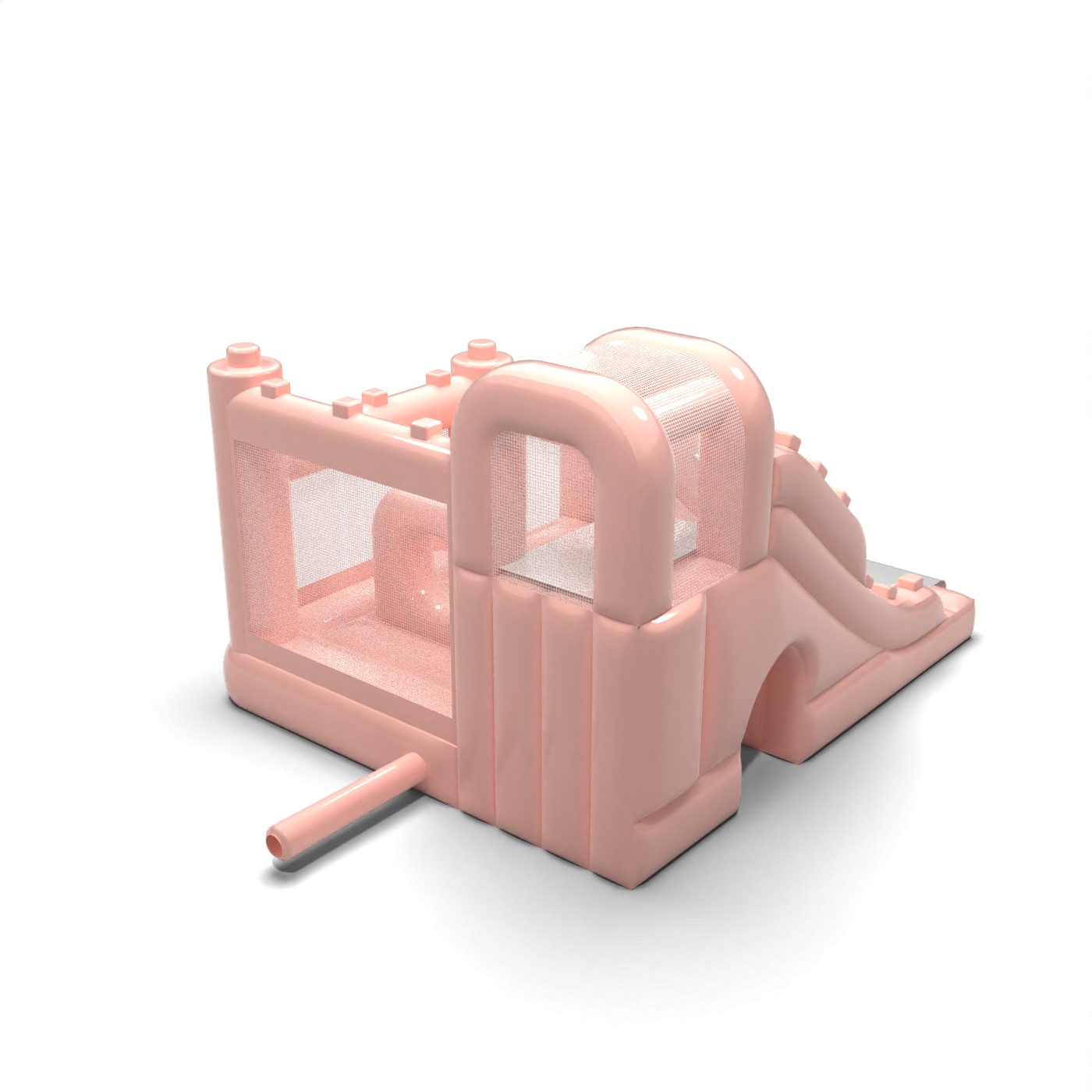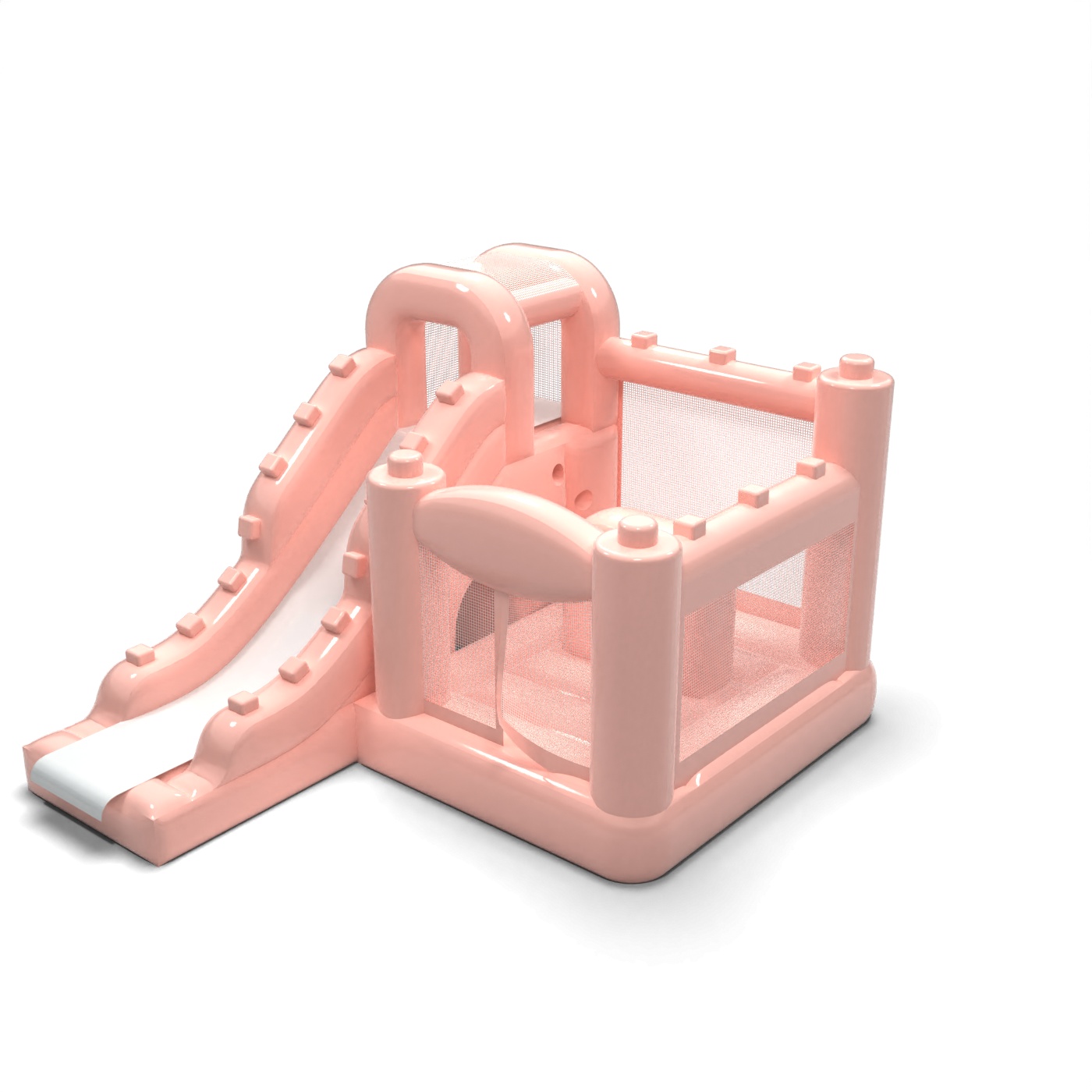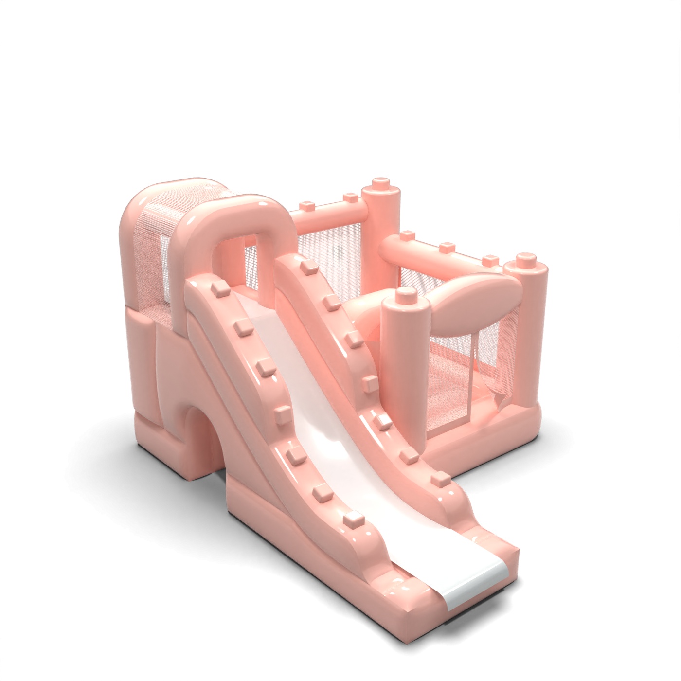 Μικρό φουσκωτό κάστρο με τσουλήθρα για παιδιά - παστέλ ροζ