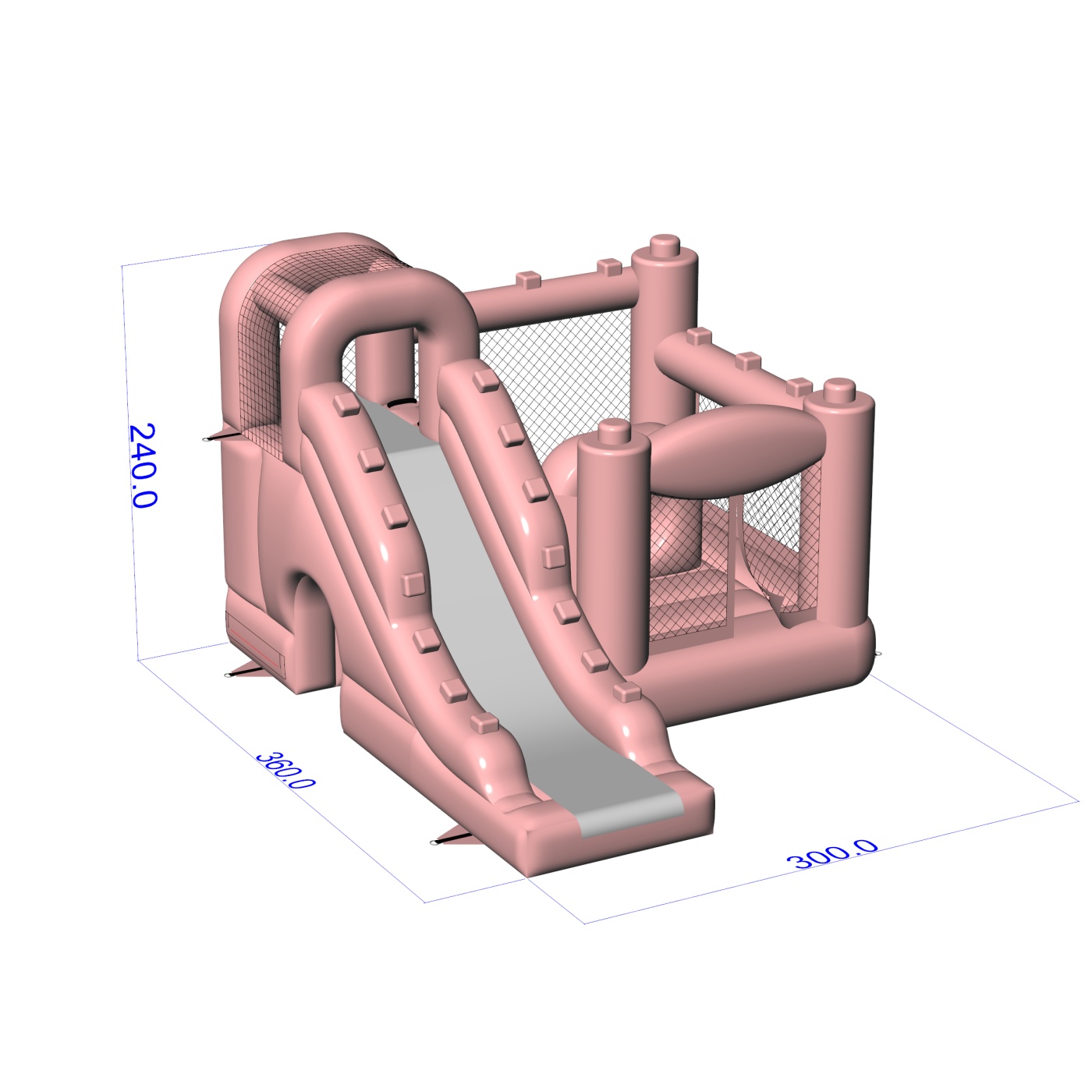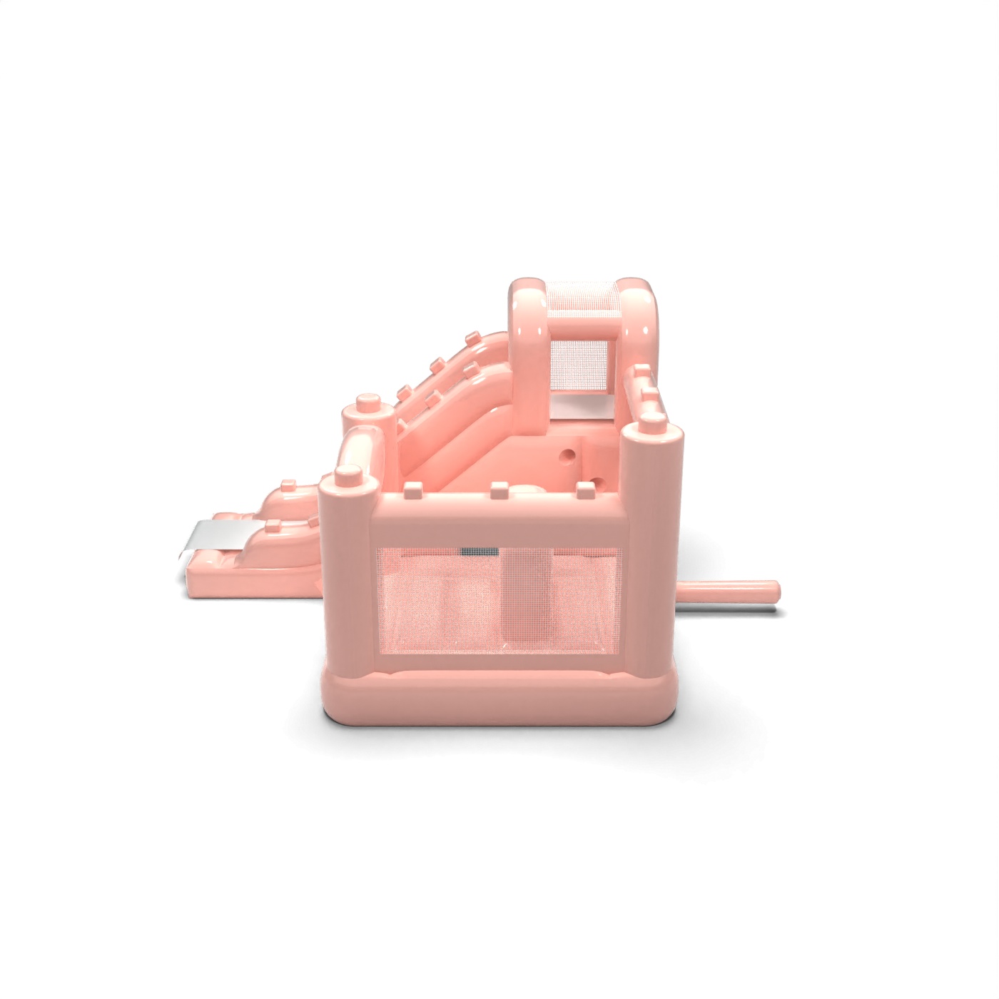 Ο συμπαγής σχεδιασμός που συνδυάζει μια περιοχή άλματος και μια τσουλήθρα σε μια μονάδα δημιουργεί έναν λειτουργικό χώρο παιχνιδιού που ταιριάζει σε μικρότερες αναπτύξεις. Το παστέλ ροζ χρώμα προσδίδει στην ατραξιόν έναν ελαφρύ, αισθητικό χαρακτήρα που συνδυάζεται καλά με διακοσμήσεις μπαλονιών και ρυθμίσεις οικογενειακών πάρτι. Οι κλειστές πλευρές από πλέγμα επιτρέπουν τον εύκολο έλεγχο της διασκέδασης και αυξάνουν την άνεση του διοργανωτή. Αυτό το μοντέλο είναι ιδιαίτερα πρακτικό για ενοικιάσεις που καλύπτουν γενέθλια στον κήπο, πάρτι κοινωνίας και οικείες ιδιωτικές εκδηλώσεις. Η ατραξιόν θα λειτουργήσει καλύτερα όταν είναι σημαντική η αισθητική, η ασφάλεια και η γρήγορη εγκατάσταση σε περιορισμένο χώρο.