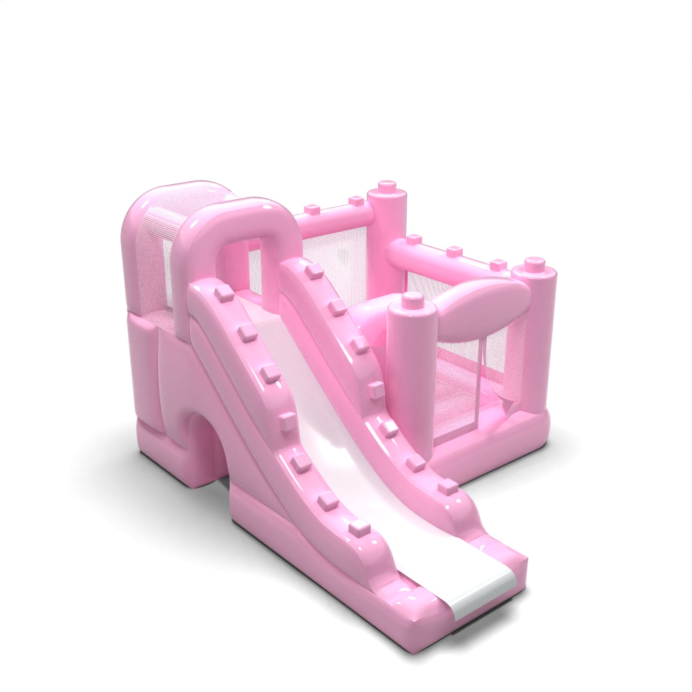 Μικρό φουσκωτό κάστρο με τσουλήθρα για παιδιά - ροζ σε σκόνη
