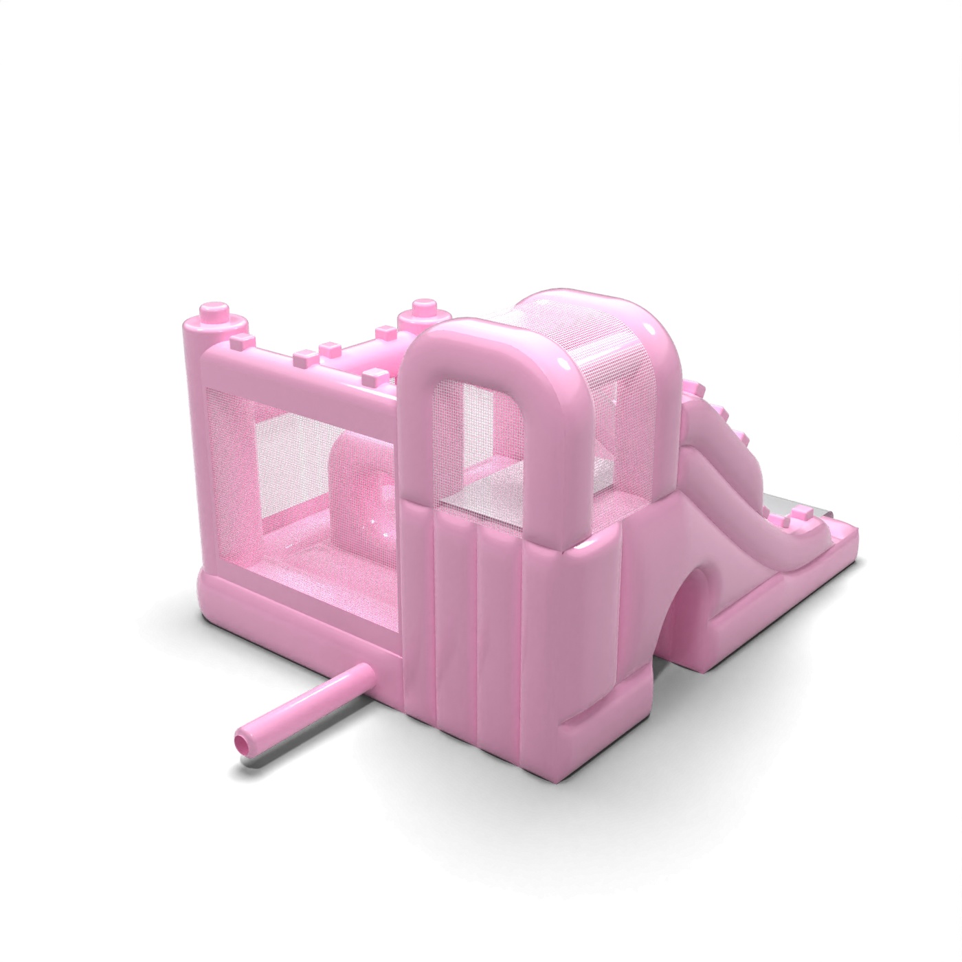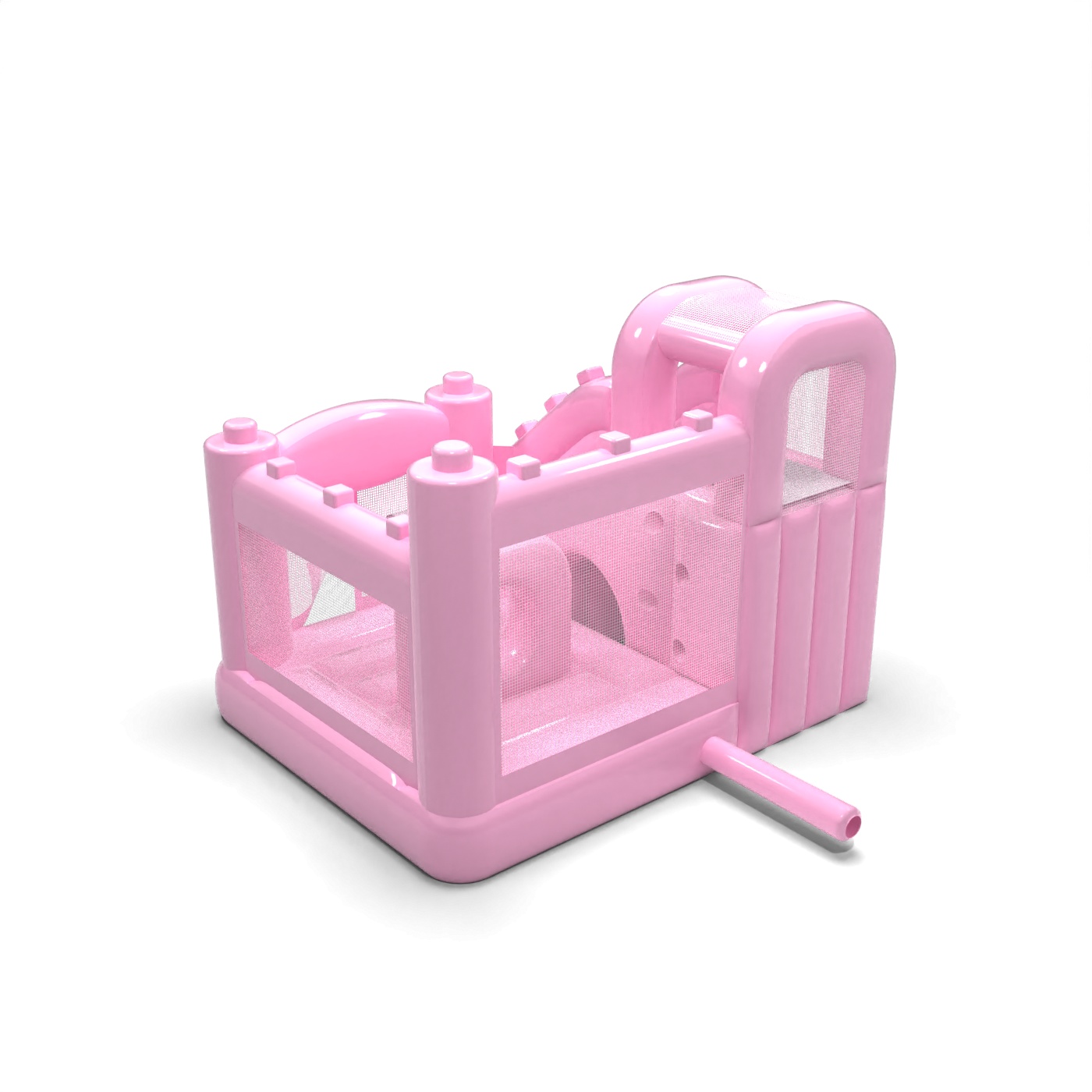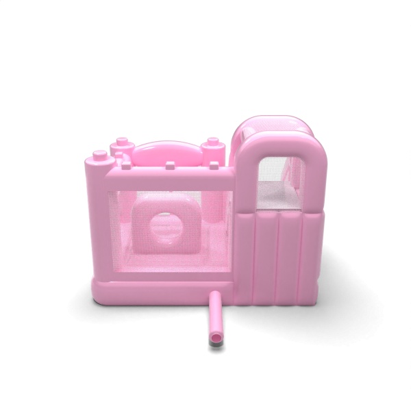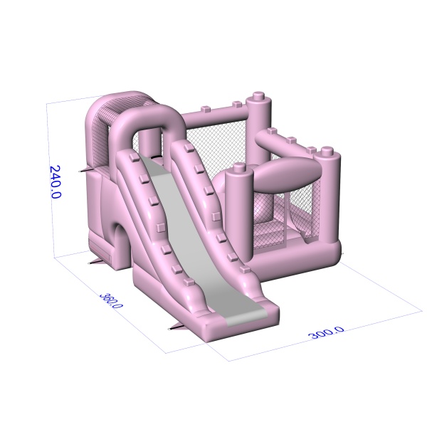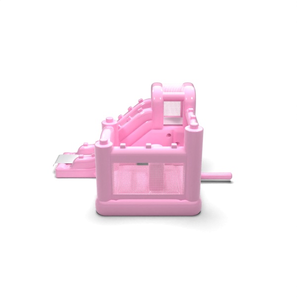 Το ντελικάτο σώμα σε ροζ χρώμα σε σκόνη προσδίδει μια ήρεμη, αρμονική ατμόσφαιρα στον παιδικό χώρο, η οποία συμβάλλει στην οικογενειακή ατμόσφαιρα της εκδήλωσης. Ένας εσωτερικός χώρος με χώρο για άλματα και μια πλάγια δρομολογημένη τσουλήθρα επιτρέπει στα παιδιά να μετακινούνται φυσικά μεταξύ των δραστηριοτήτων χωρίς να δημιουργείται συμφόρηση. Η δομή έχει σχεδιαστεί έτσι ώστε να μεγιστοποιεί τη χρήση ενός μικρού χώρου, διατηρώντας παράλληλα την άνεση του παιχνιδιού. Αυτή η λύση θα λειτουργήσει καλά για εταιρείες ενοικίασης που εξυπηρετούν παιδικούς σταθμούς, animation σε ξενοδοχεία και οικείες υπαίθριες εκδηλώσεις. Το μοντέλο ταιριάζει καλύτερα σε έργα όπου η διακριτική αισθητική και η φιλικότητα της ατραξιόν για τα παιδιά είναι σημαντικά.